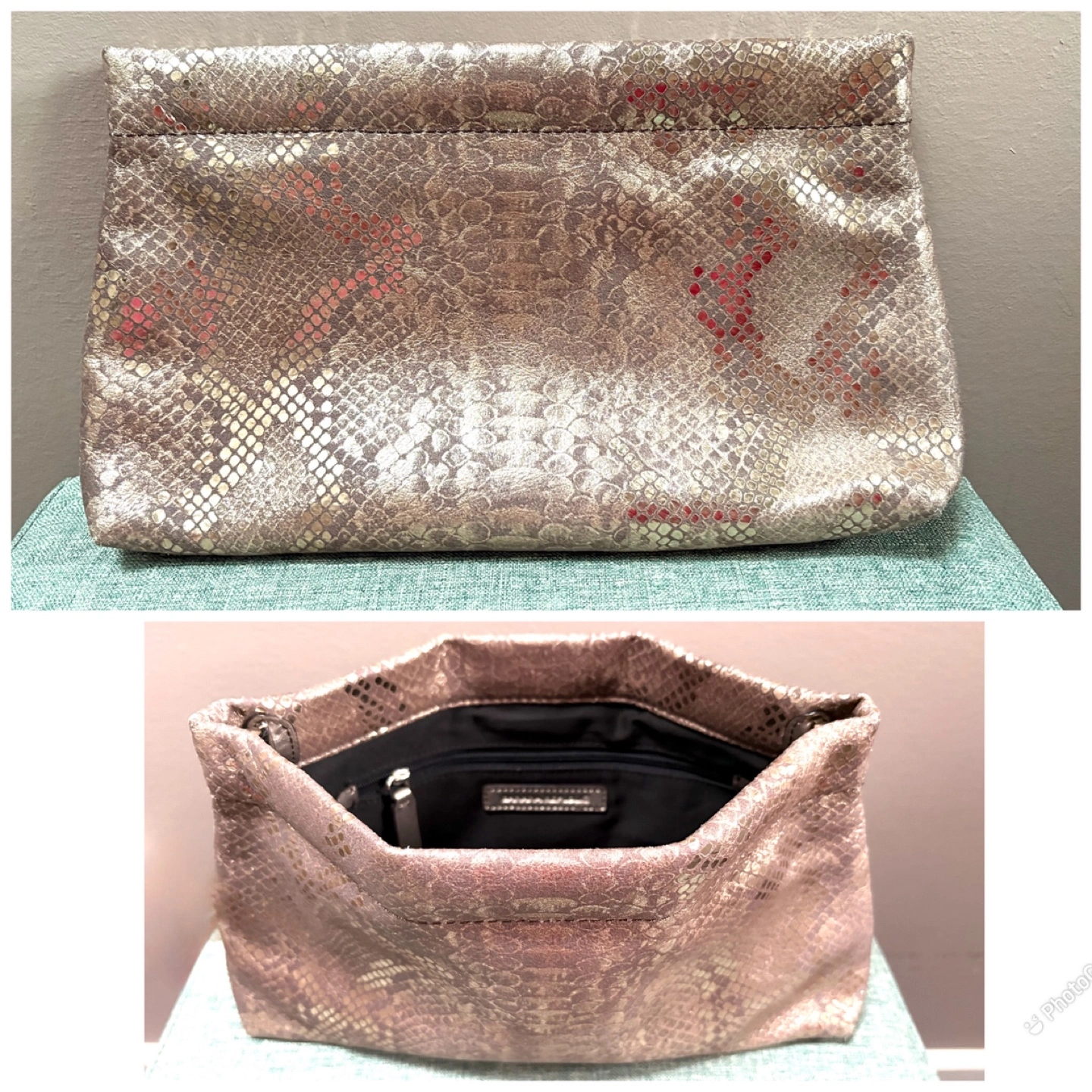 This is a Banana Republic handbag / clutch with a snakeskin pattern.