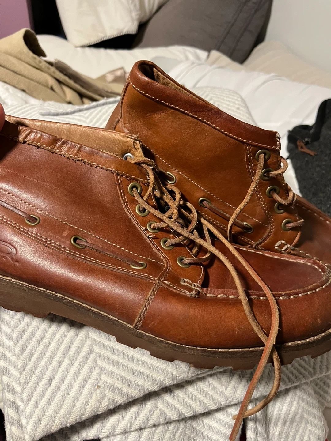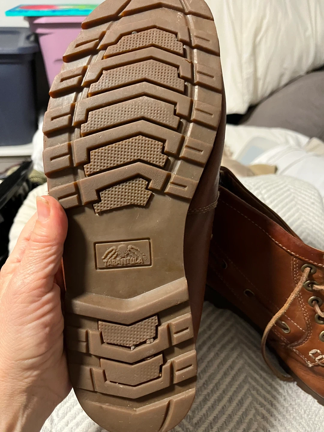 Selling a pair of Tarantola brown leather boots in size 10M. They show some signs of wear, but still have lots of life left! Great for everyday wear or outdoor adventures.