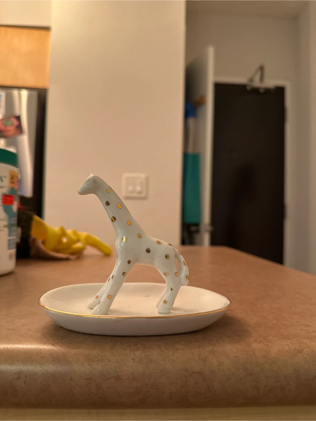 Here's a cute little giraffe trinket dish! It's white with gold accents and is perfect for holding small jewelry or other little items
