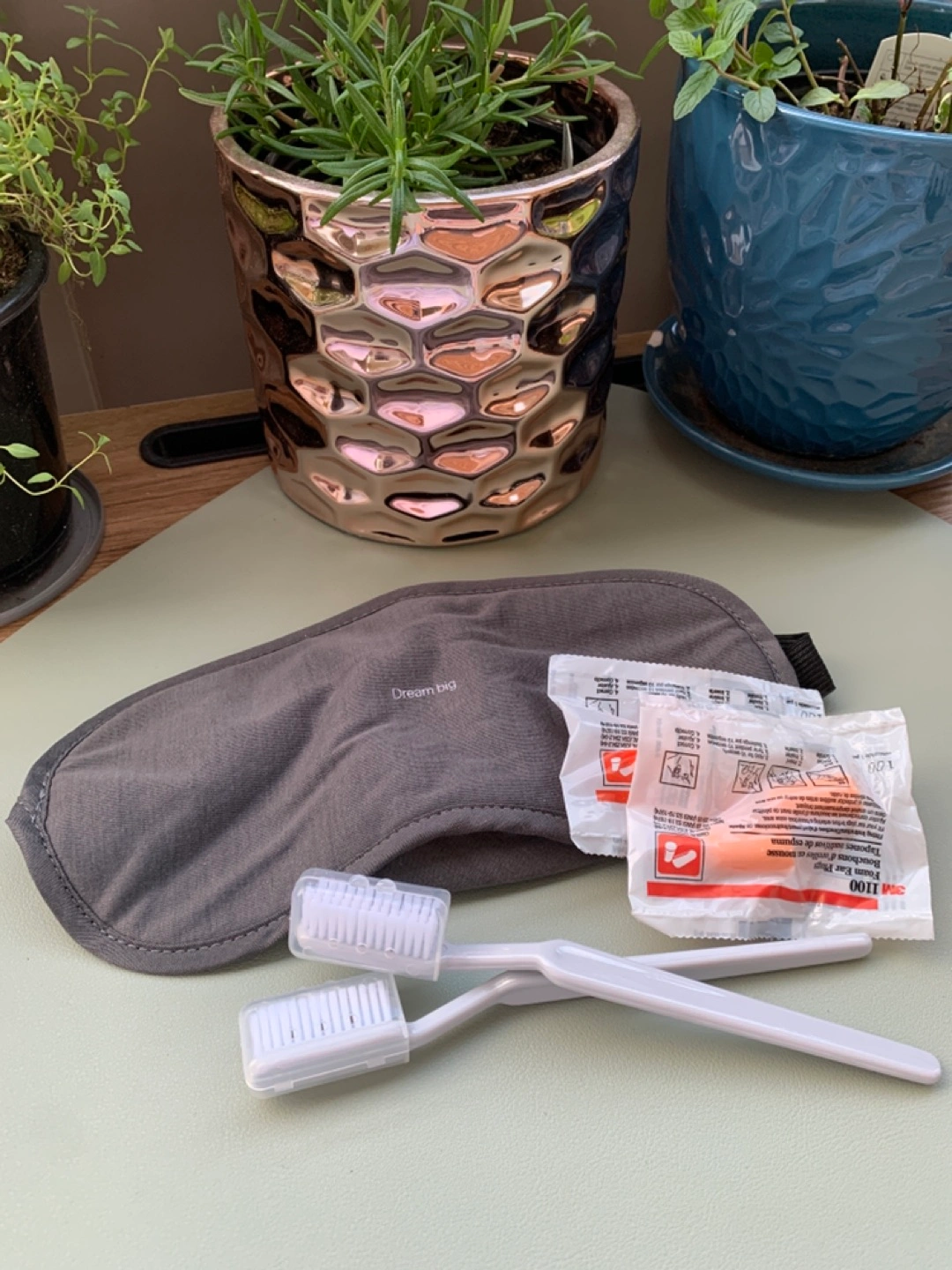 - one sleeping mask with written “dream big”