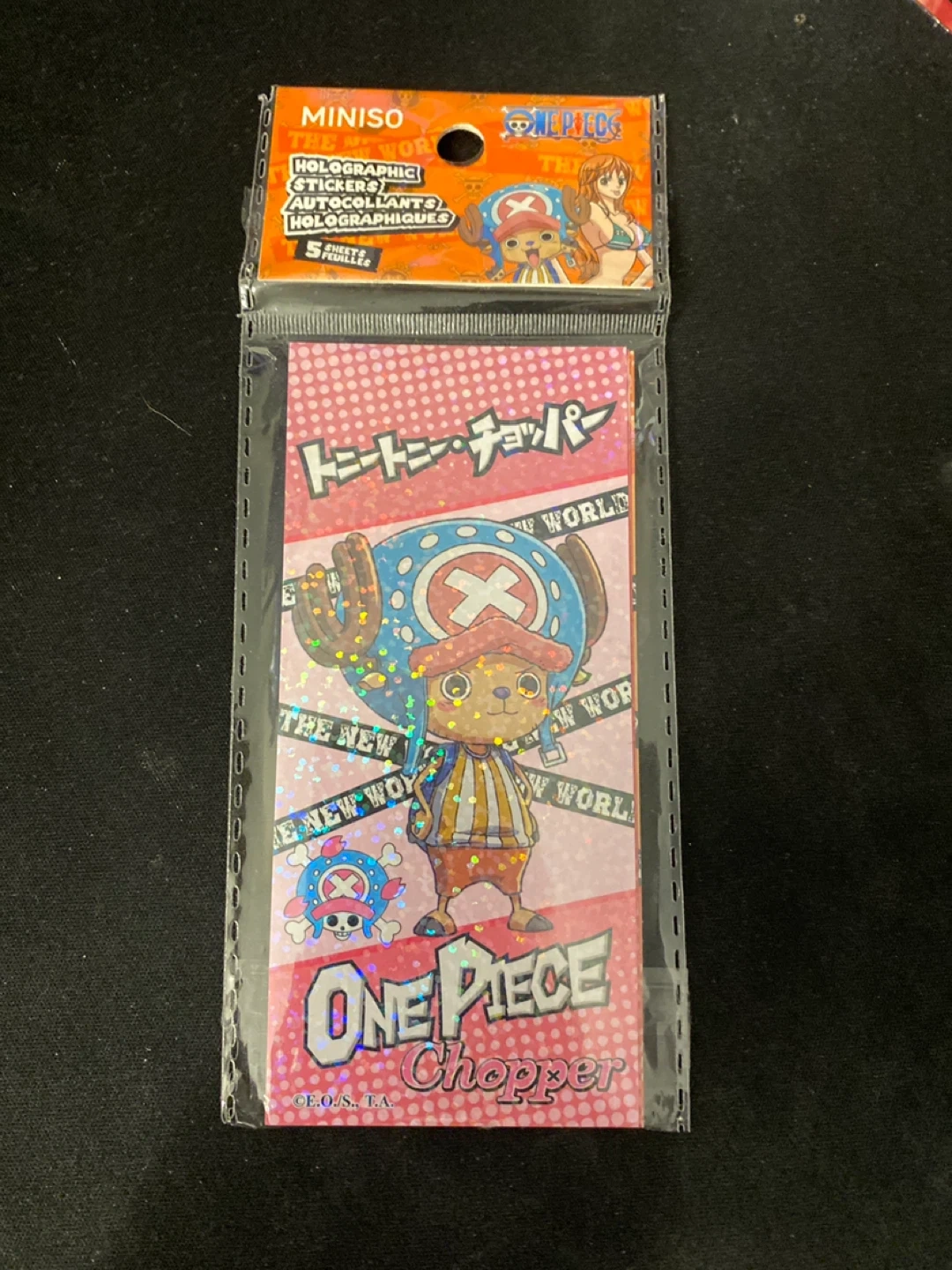 I'm selling a pack of brand new Miniso One Piece holographic stickers featuring Chopper! These cute stickers are perfect for decorating your notebooks, phone, or anything you like! Each pack contains 5 sheets of stickers. Get them while they're here!