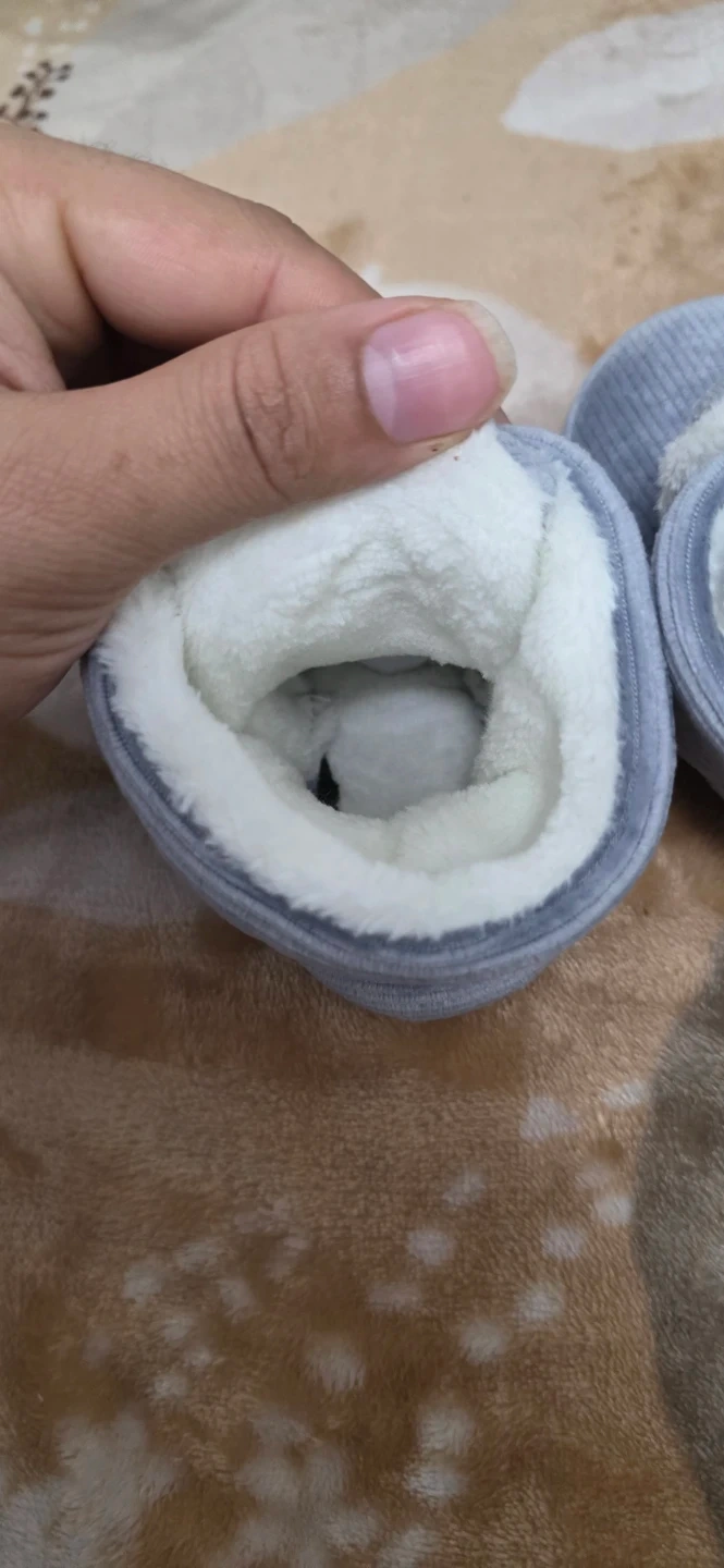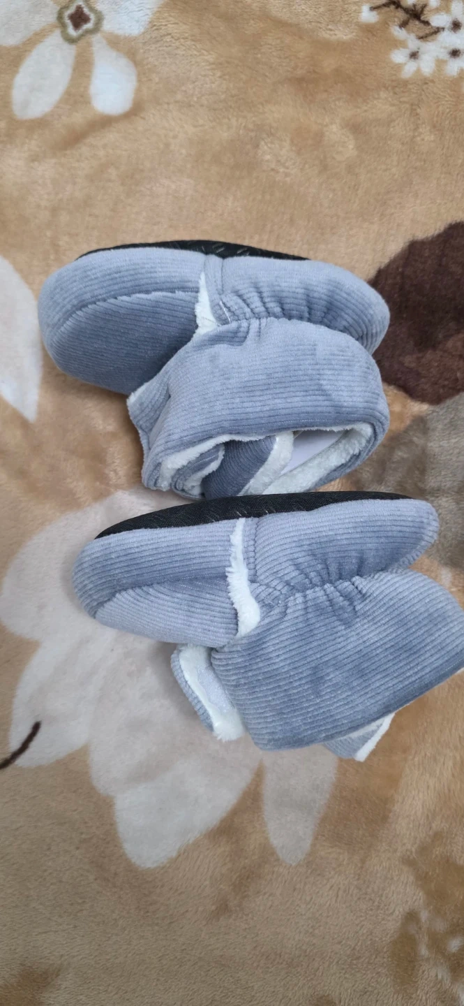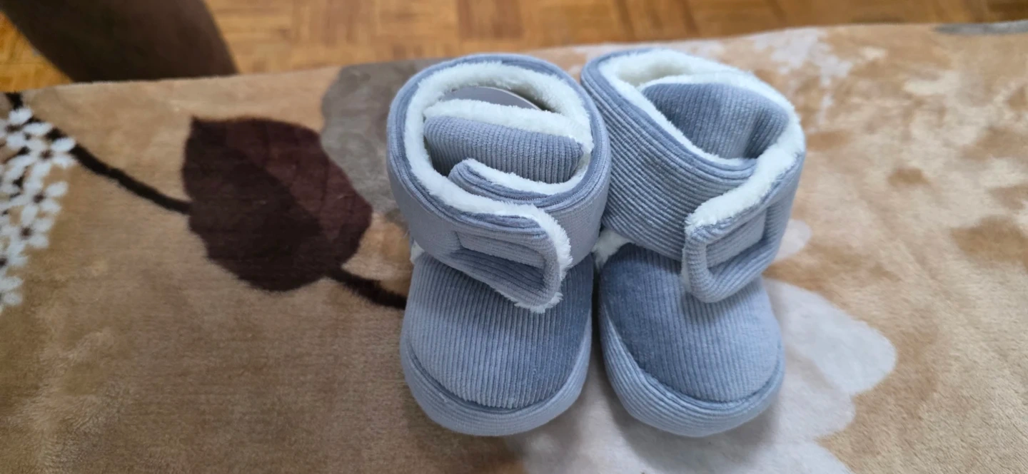 These adorable baby booties are in great condition! They're a soft baby blue colour with a cozy white interior. Perfect for keeping your little one's feet warm and snug. They seem to be around 0-3 months size