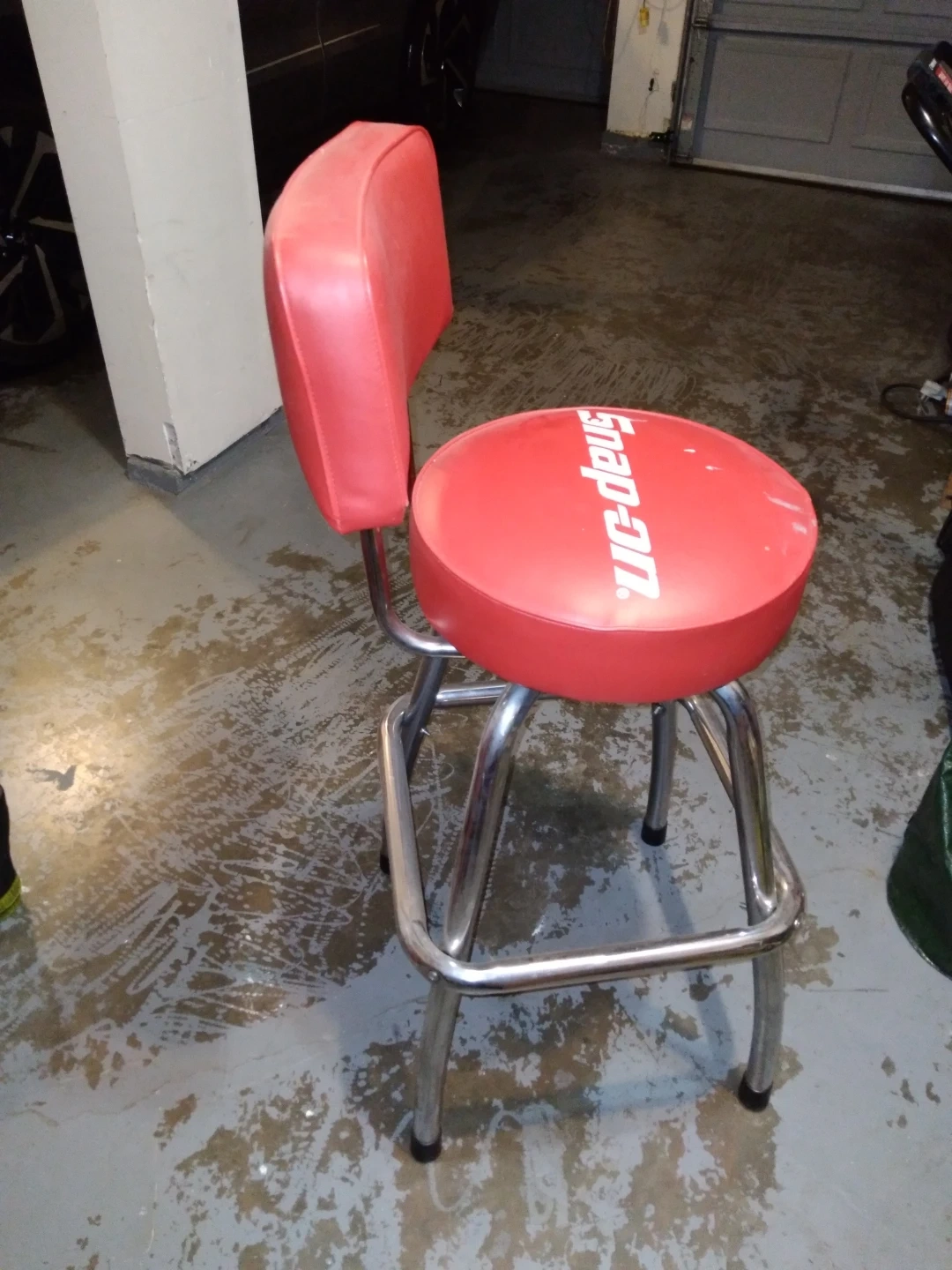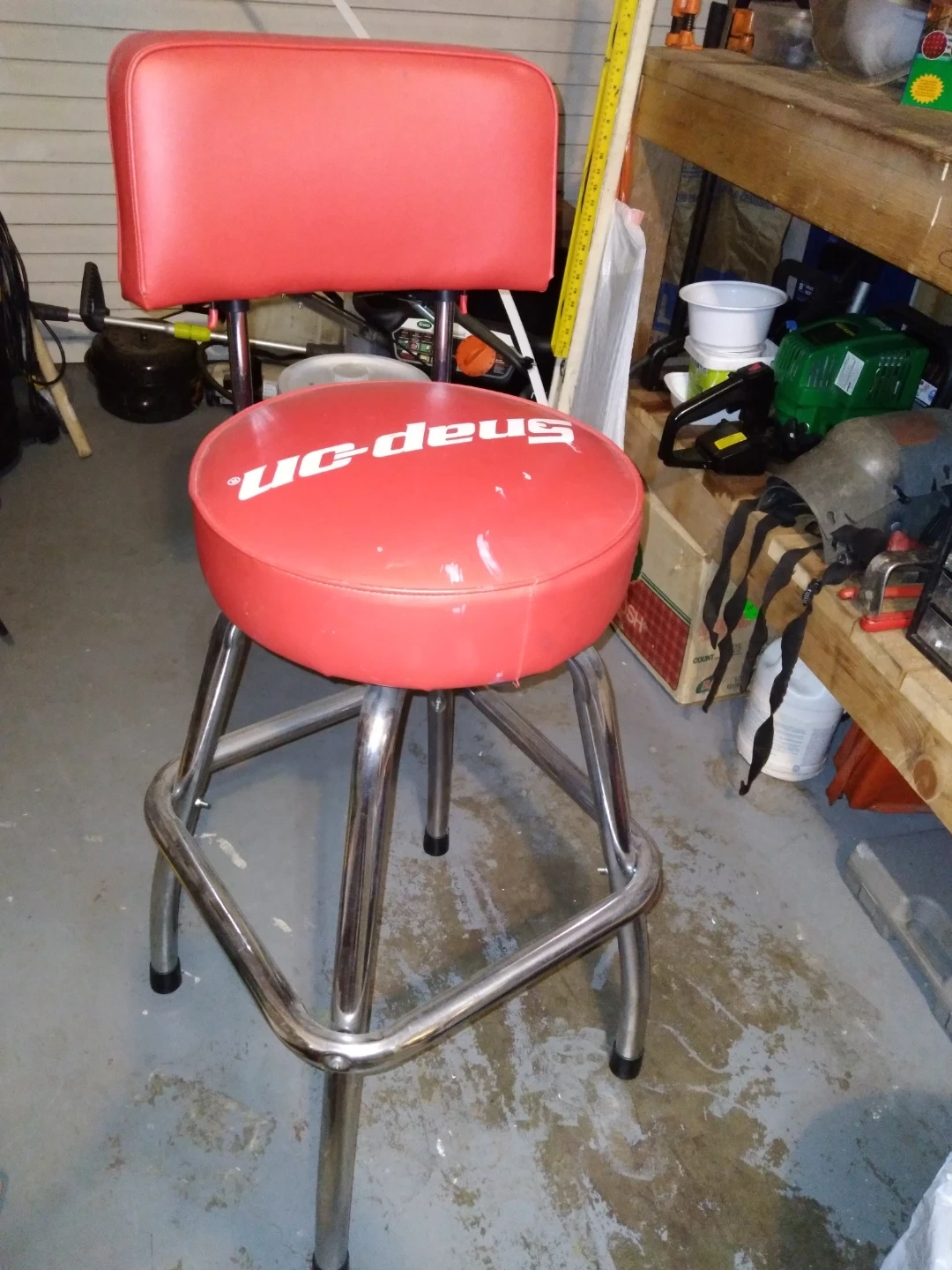 Selling a Snap-on shop stool in red! It has a backrest for added comfort while you're working.