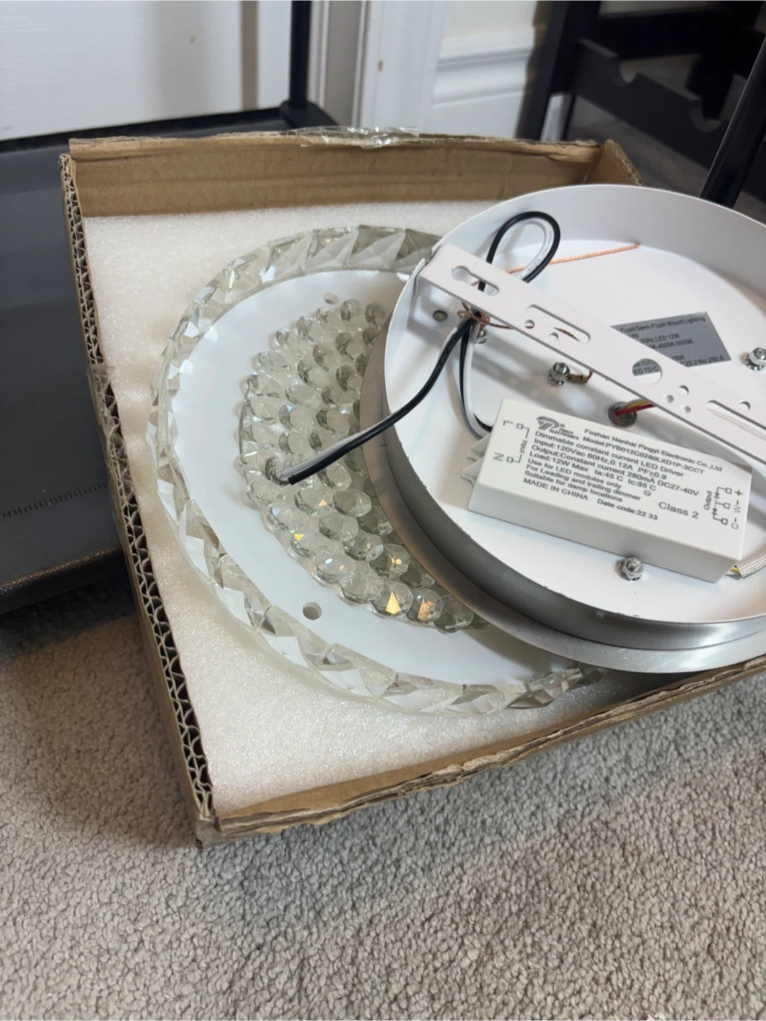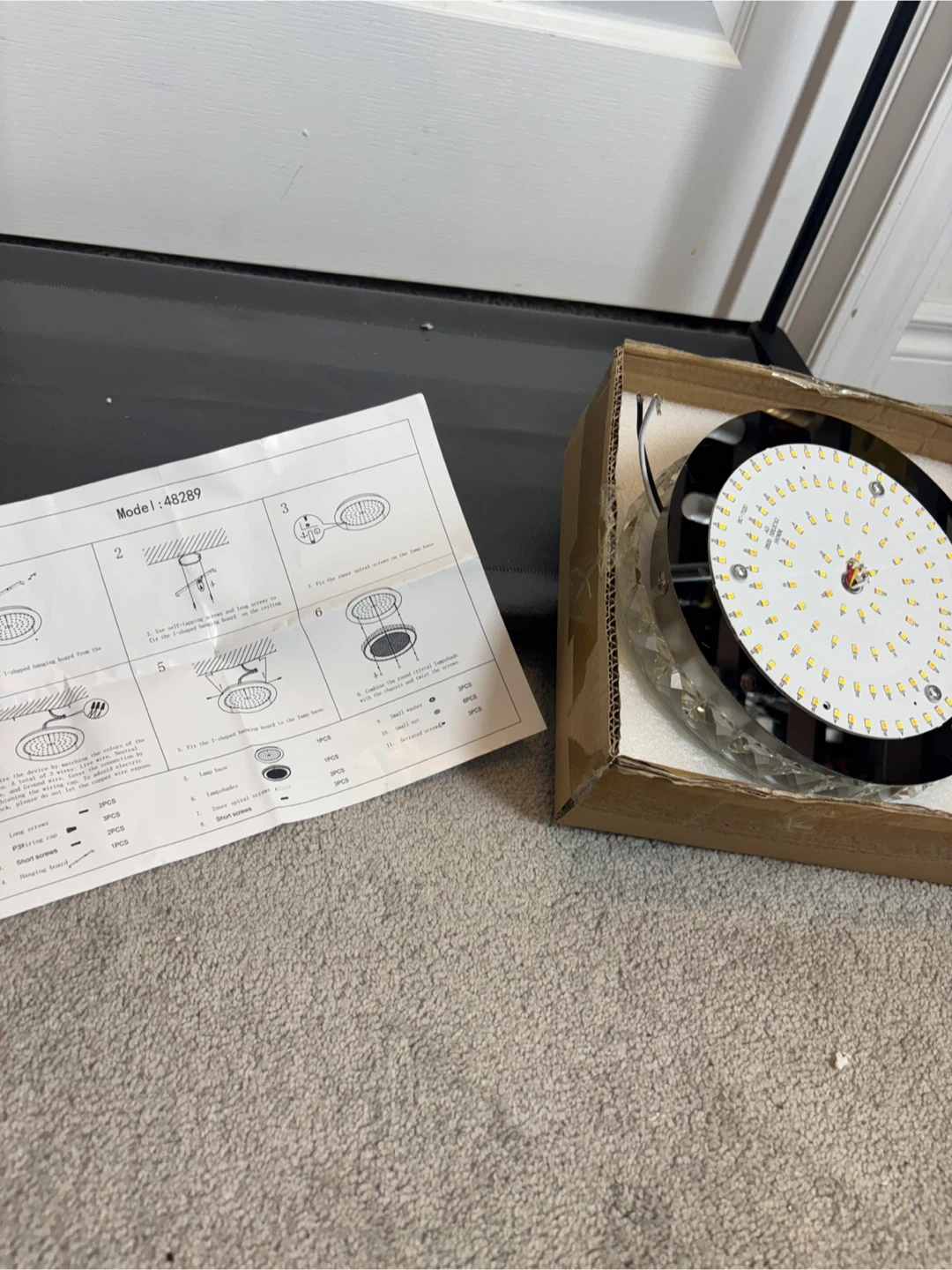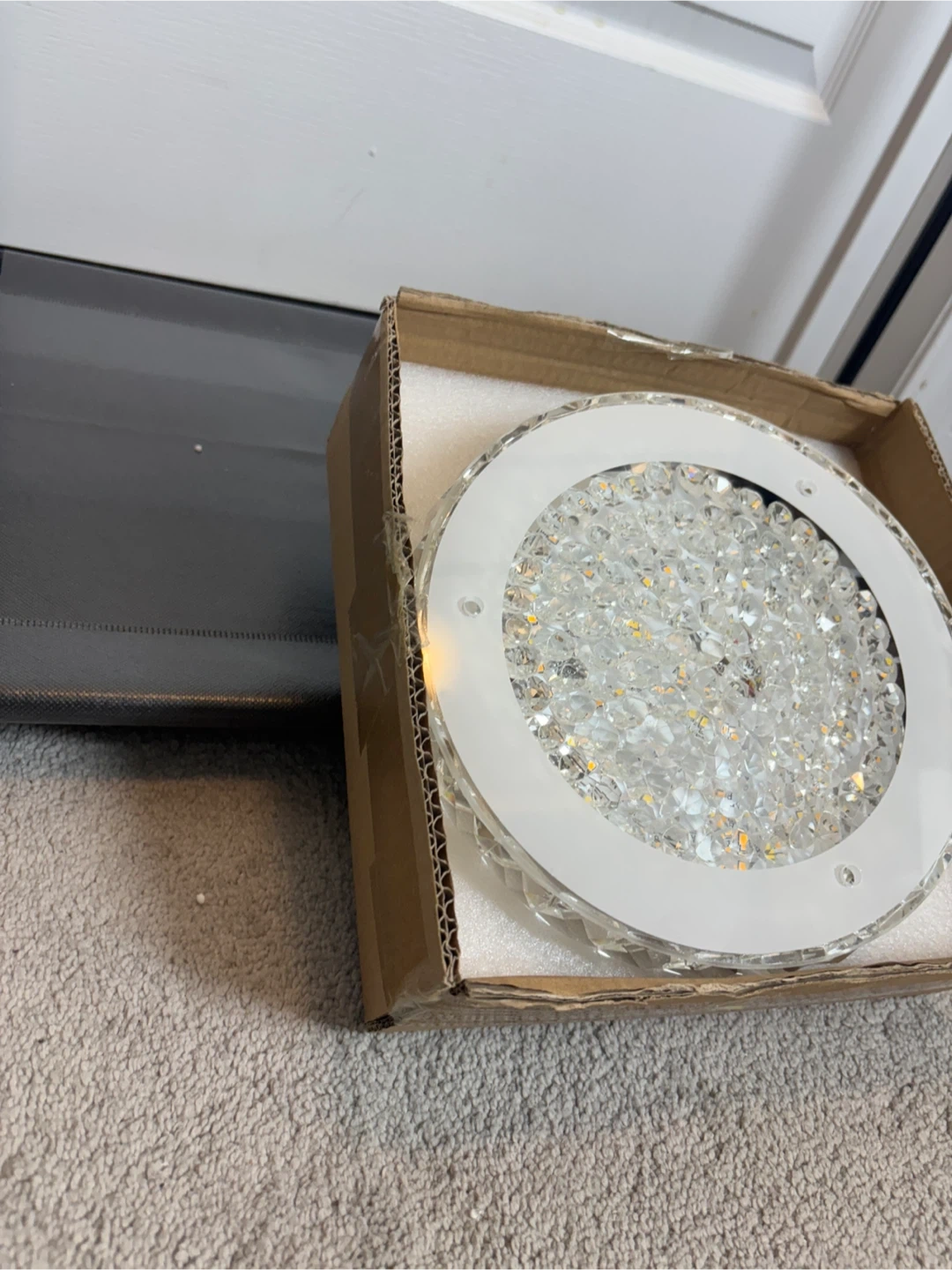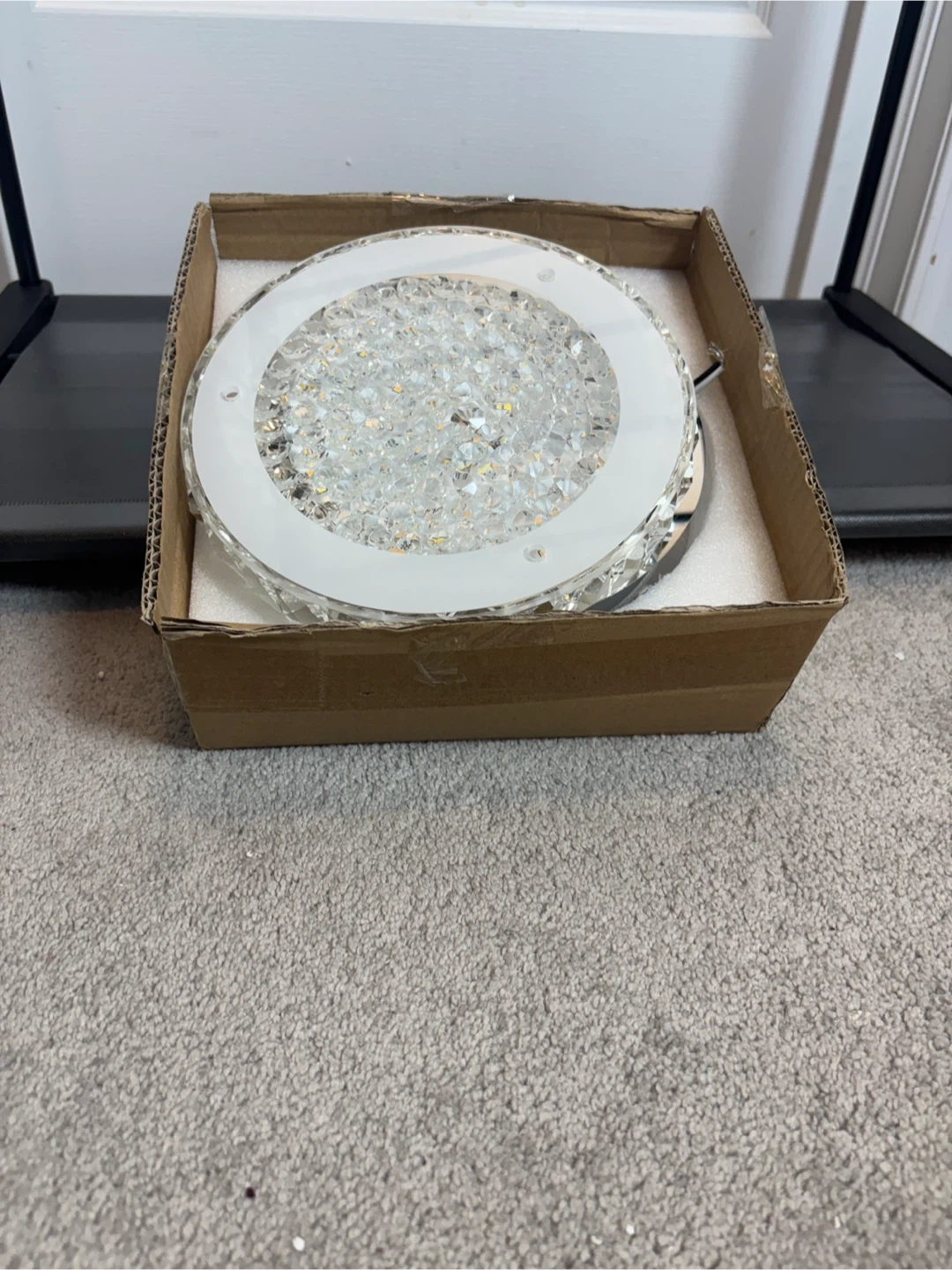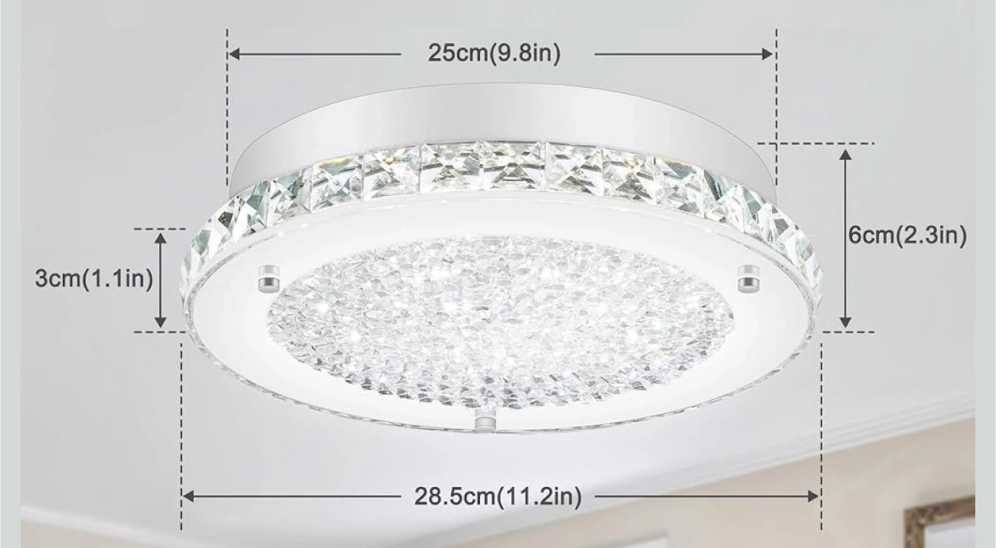 Selling a brand new crystal LED ceiling light still in its original box! This beautiful light fixture features a modern design with sparkling crystals, perfect for adding a touch of elegance to any room. The dimensions are approximately 28.5cm (11.2in) in diameter and 6cm (2.3in) in height. It's a stylish and energy-efficient lighting solution!