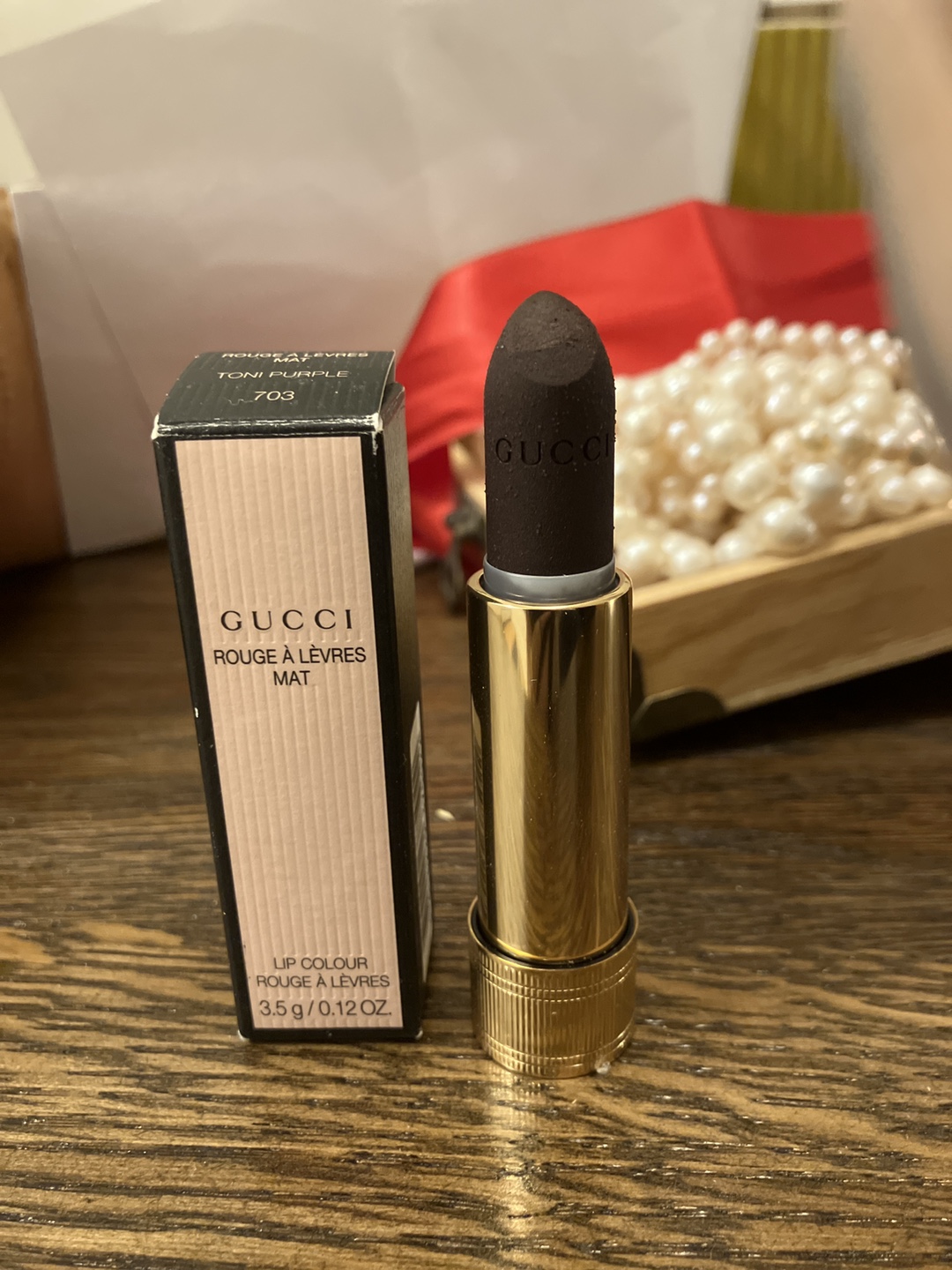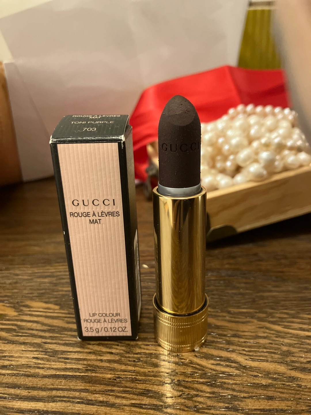 Selling a Gucci Rouge à Lèvres Mat lipstick! It comes with the box. The lip colour is 3.5 g / 0.12 OZ. The colour is Toni Purple 703. Only used once (as shown in photo)