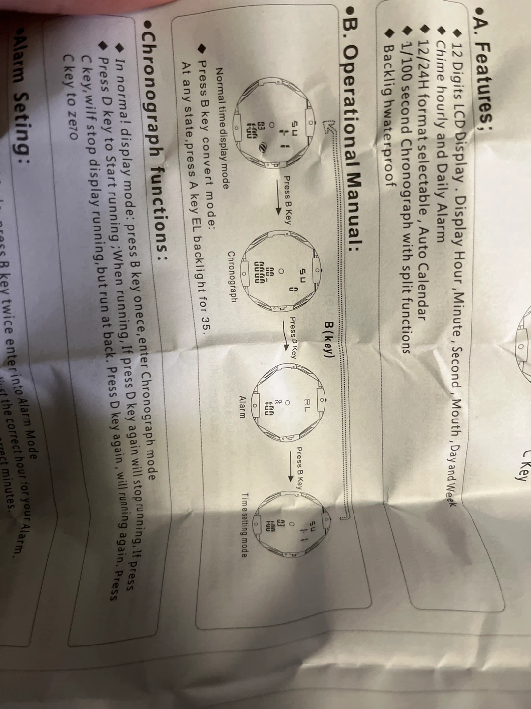 I have a brand new sport watch for sale! It's white and gold and comes with the original cardboard box. It features a 12 digits LCD display, chime hourly and daily alarm, and is also waterproof!