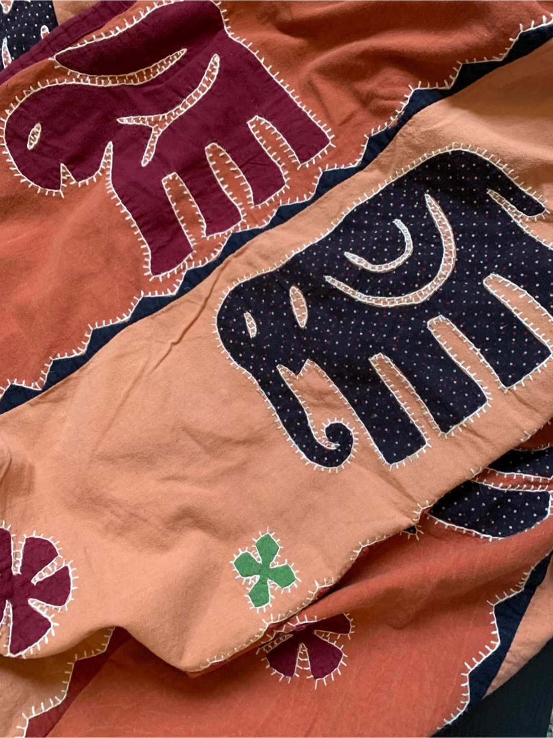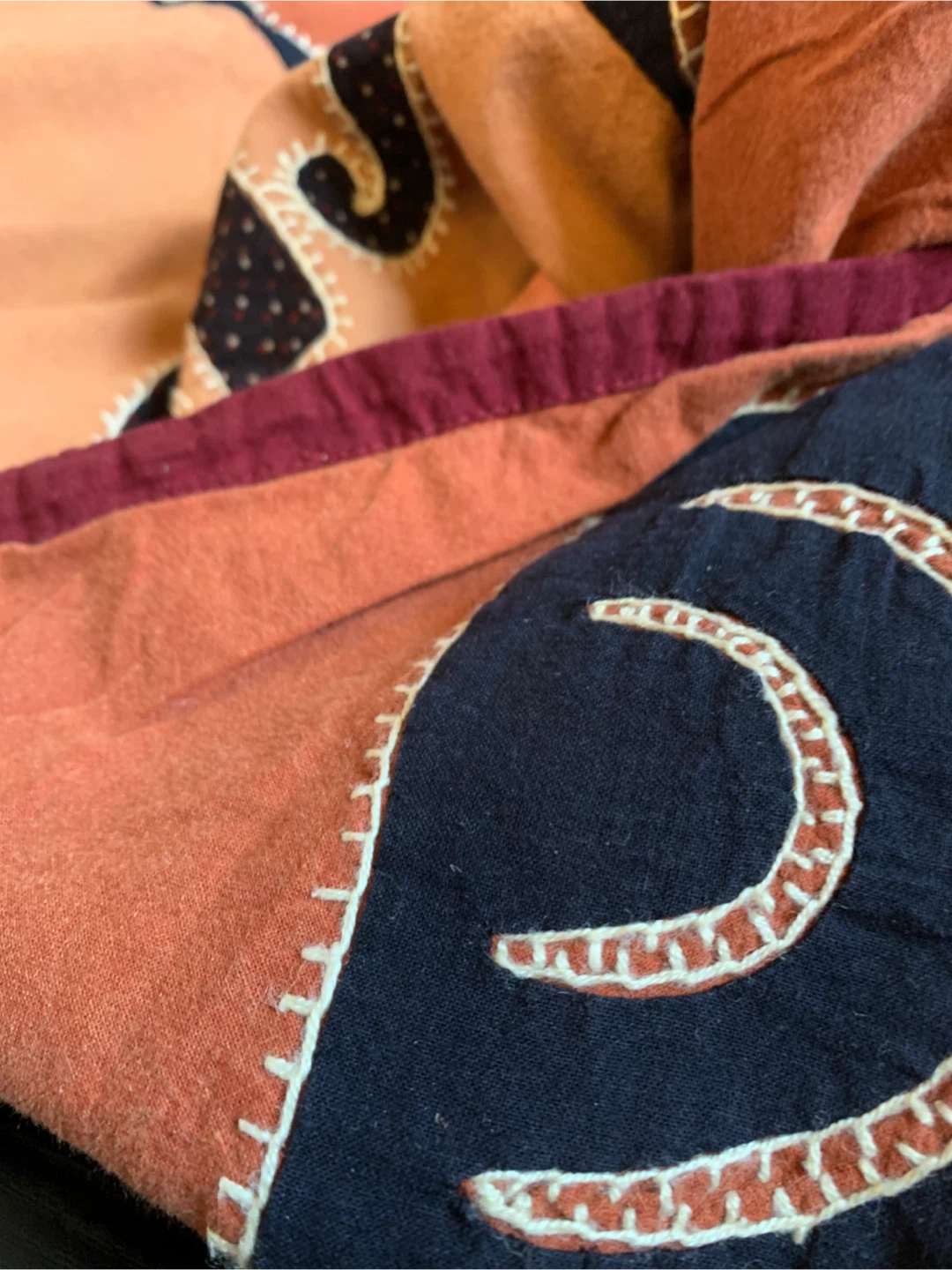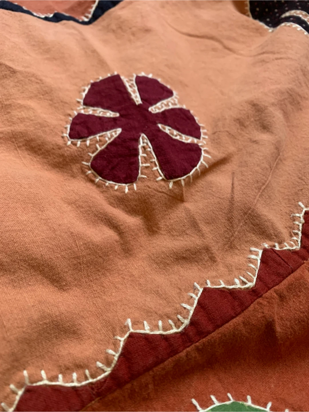 •Hand embroidery and patchwork detailing