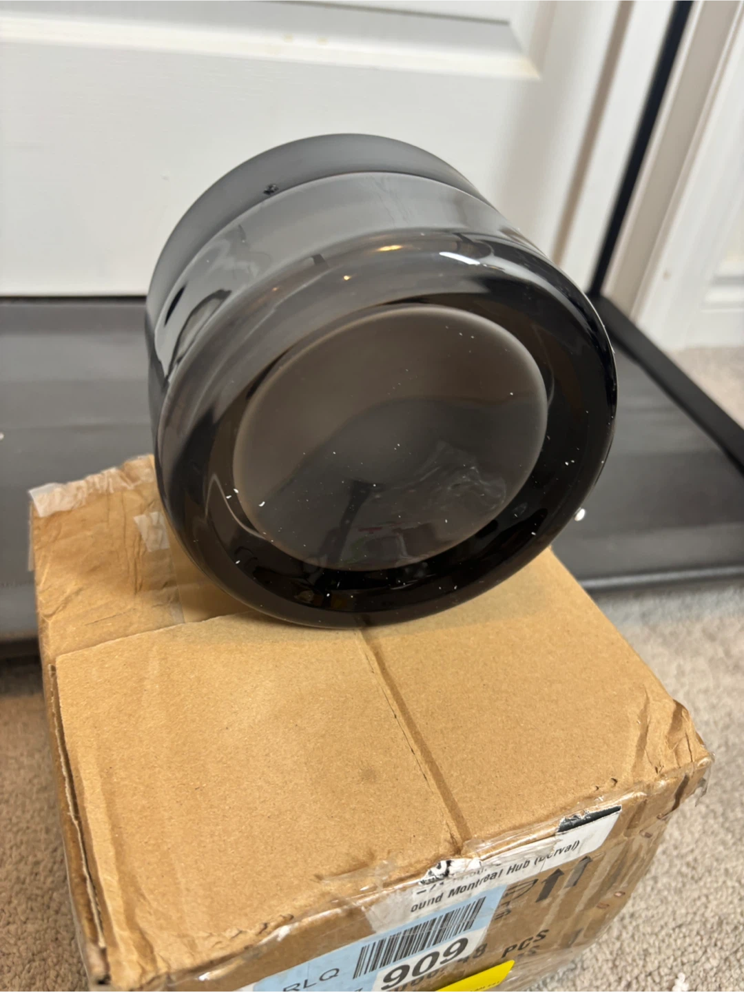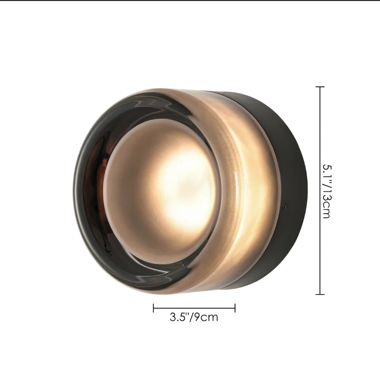 Selling a KALI 1-Light Smoked Glass Wall Sconce. It comes with the box. The dimensions are 5.1"/13cm x 3.5"/9cm. It's a beautiful piece that would look great in any room!