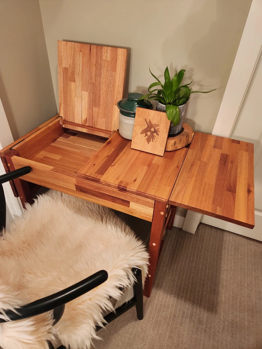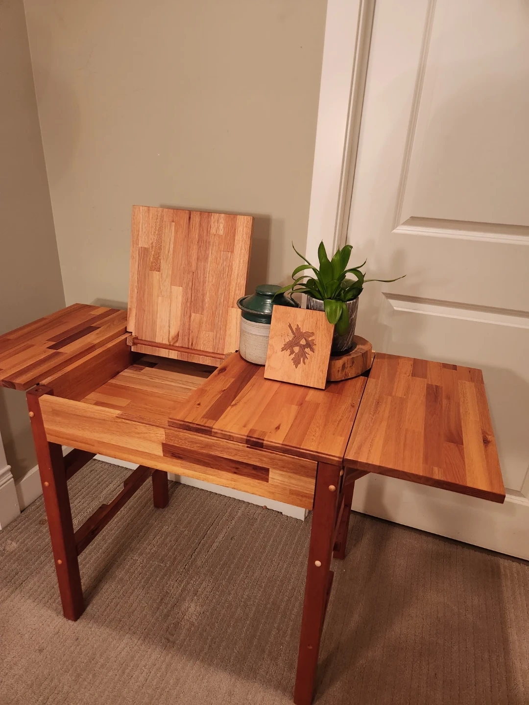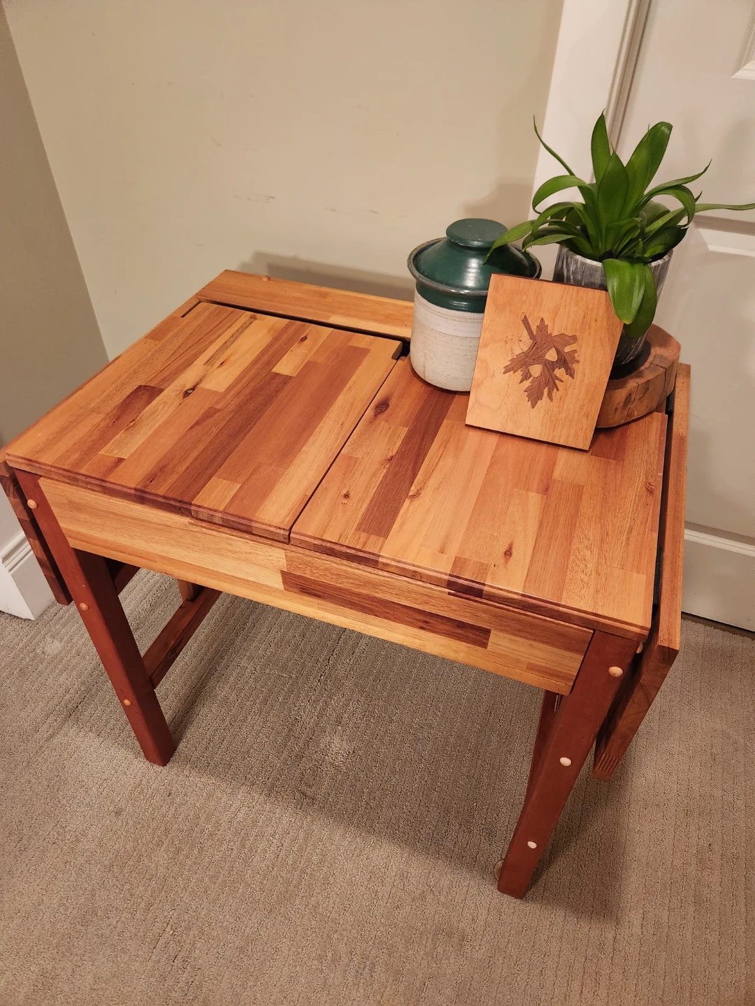 ONE of a KIND Wood Drop Leaf Table with storage & display tray
