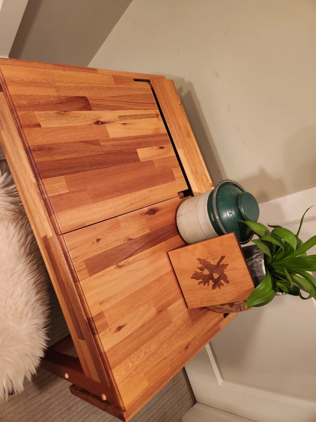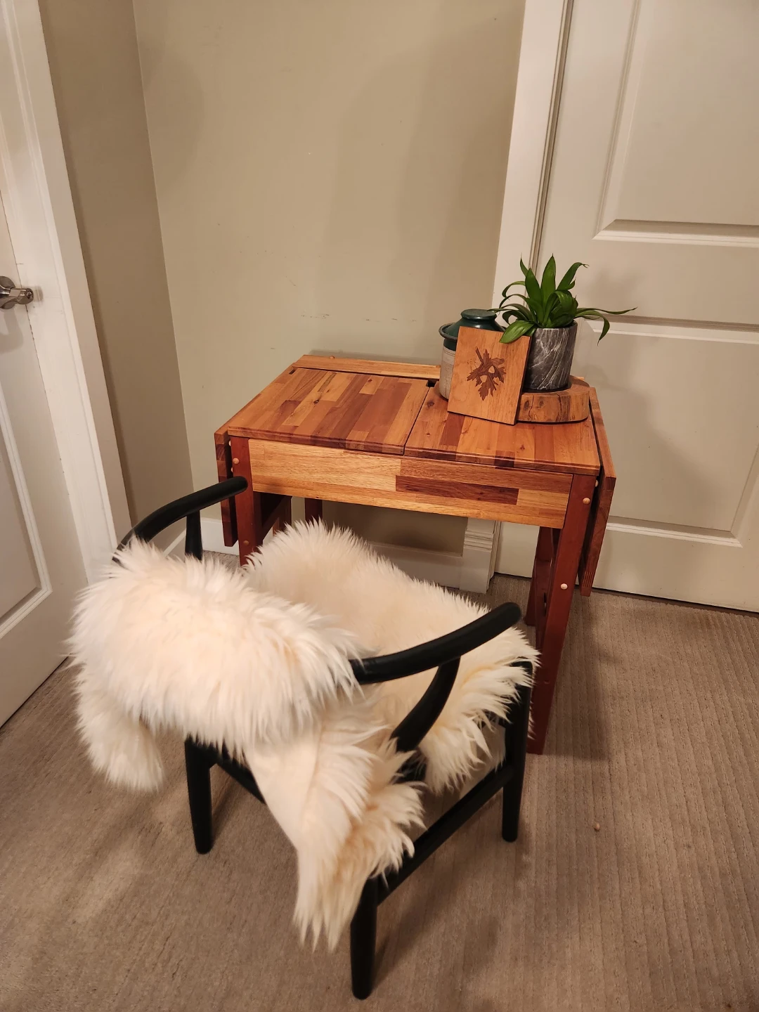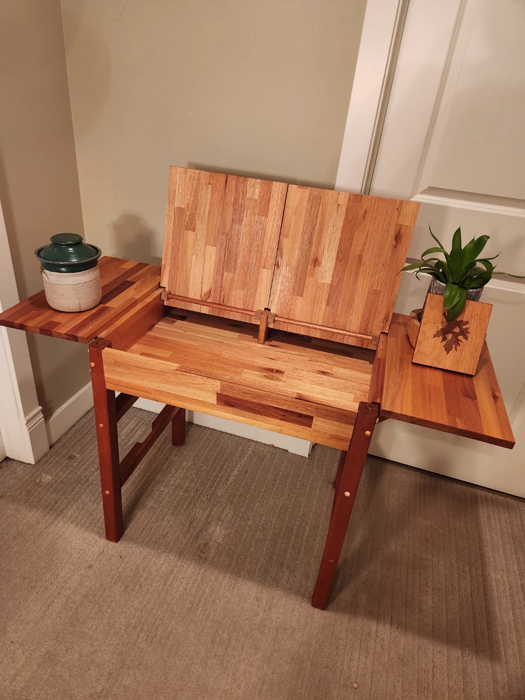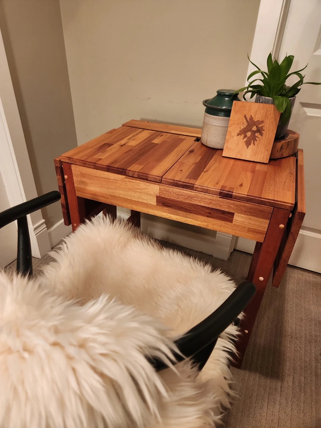 ONE of a KIND Wood Drop Leaf Table with storage & display tray