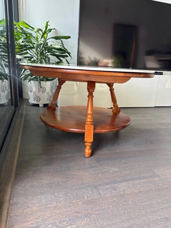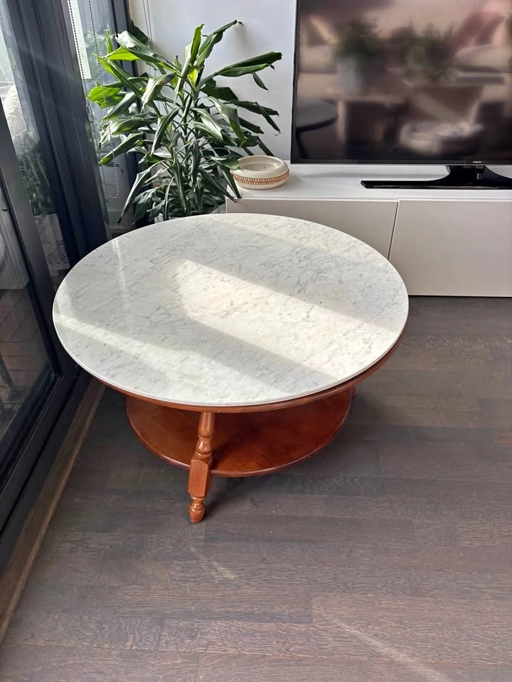 Vintage Wood Table with Carrara Marble Lazy Susan