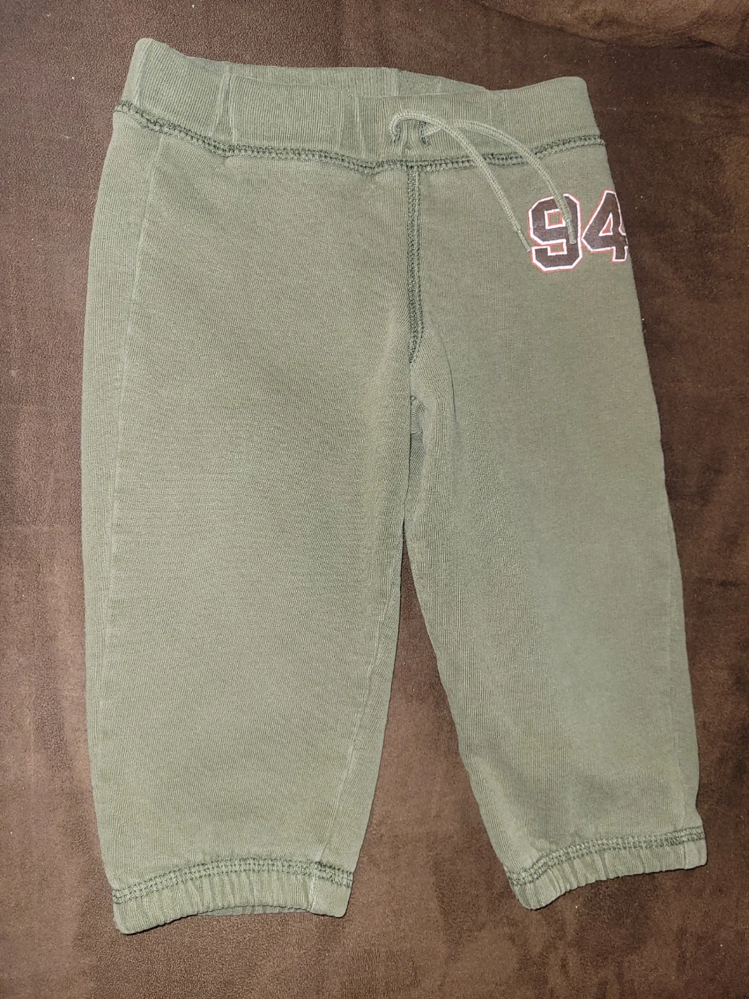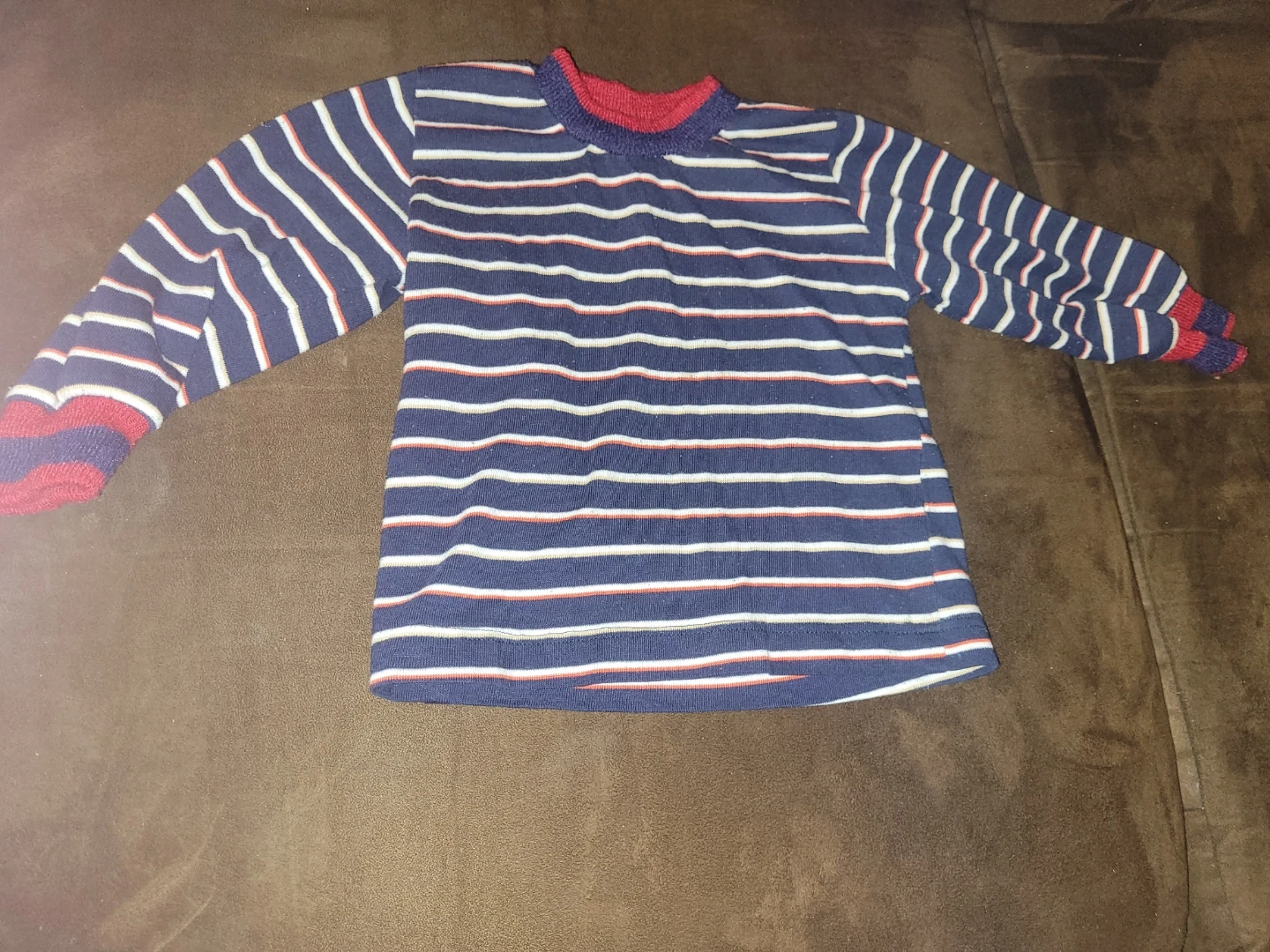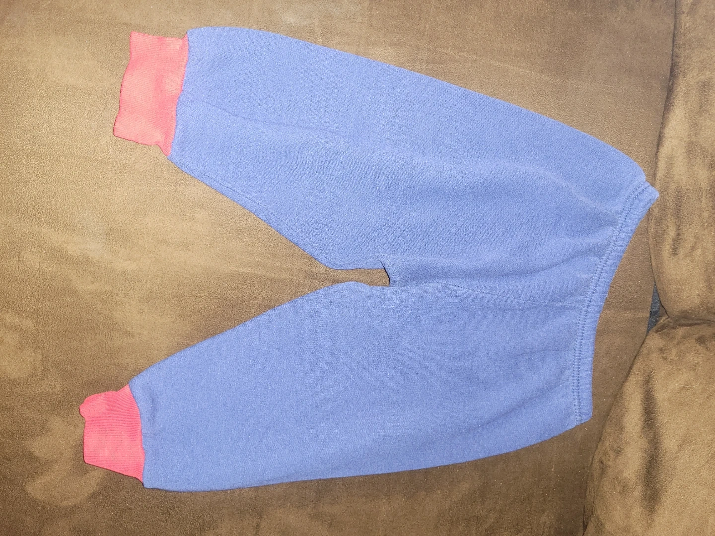 This is a lot of four used size 2T kids clothes, with a long sleeve shirt and three pairs of pants.