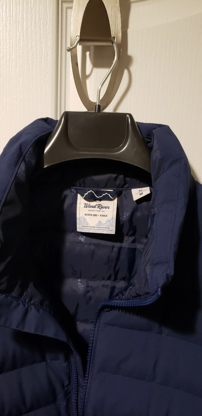 Selling a Wind River Outfitters puffer jacket in size medium. It's a nice navy blue colour and looks to be in great condition. The tag shows it was originally $99.99!