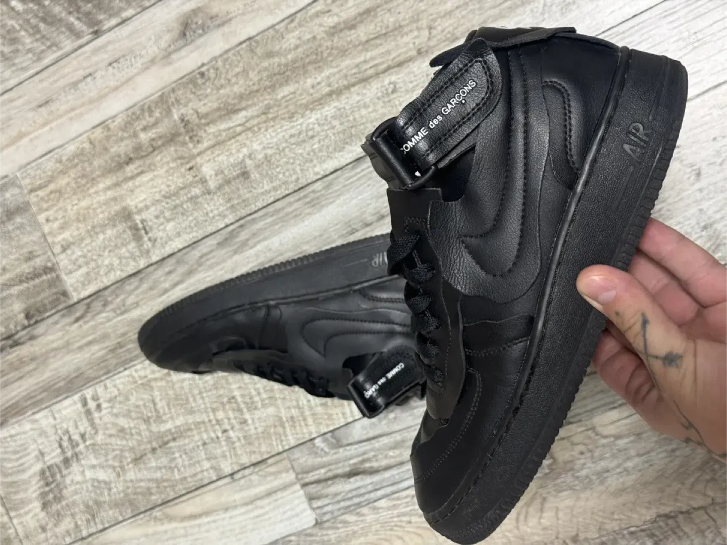Selling a pair of Nike Air Force 1 Mid sneakers in collaboration with Comme des Garcons!