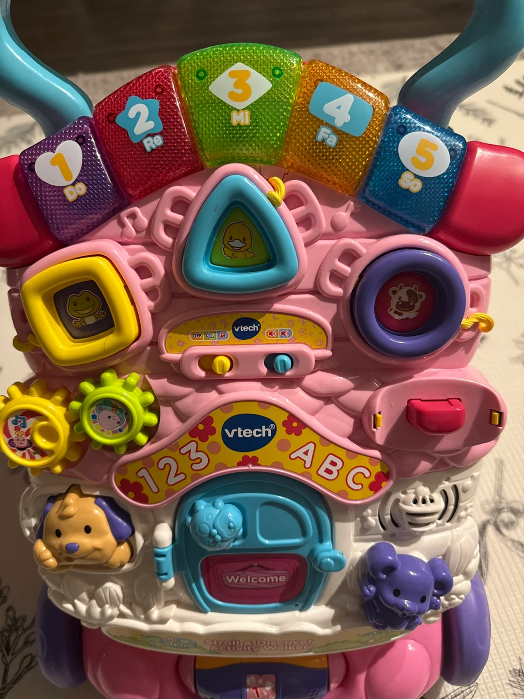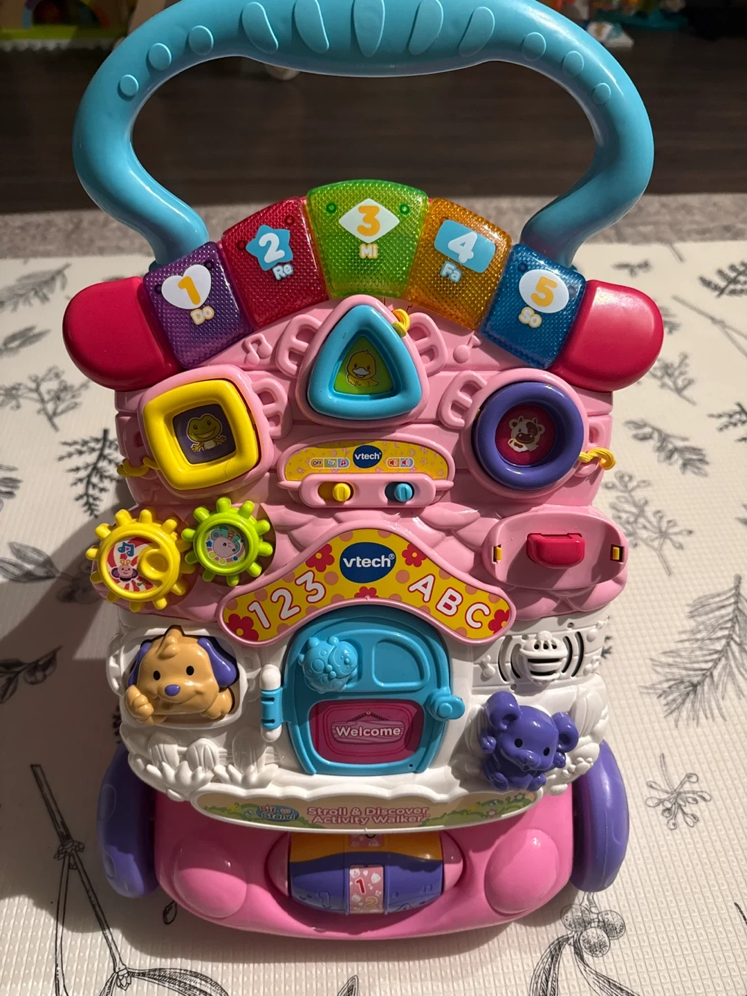 Selling a VTech Sit-to-Stand Learn & Discover Walker. It's in great shape and ready for a new little one to enjoy! This interactive walker helps your baby develop from a crawler to a walker through adaptive technology. With a playful design and lots of engaging activities, it's perfect for encouraging those first steps and exploring numbers, colours, animals and more
