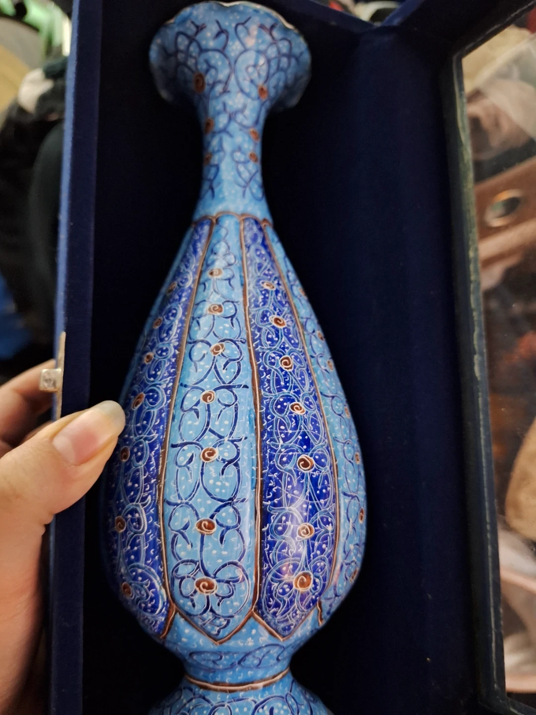 Persian handiwork, always hand painted and completely authentic. It's never been brought out of the box so it's in perfect shape, great for gifting or for your own decoration