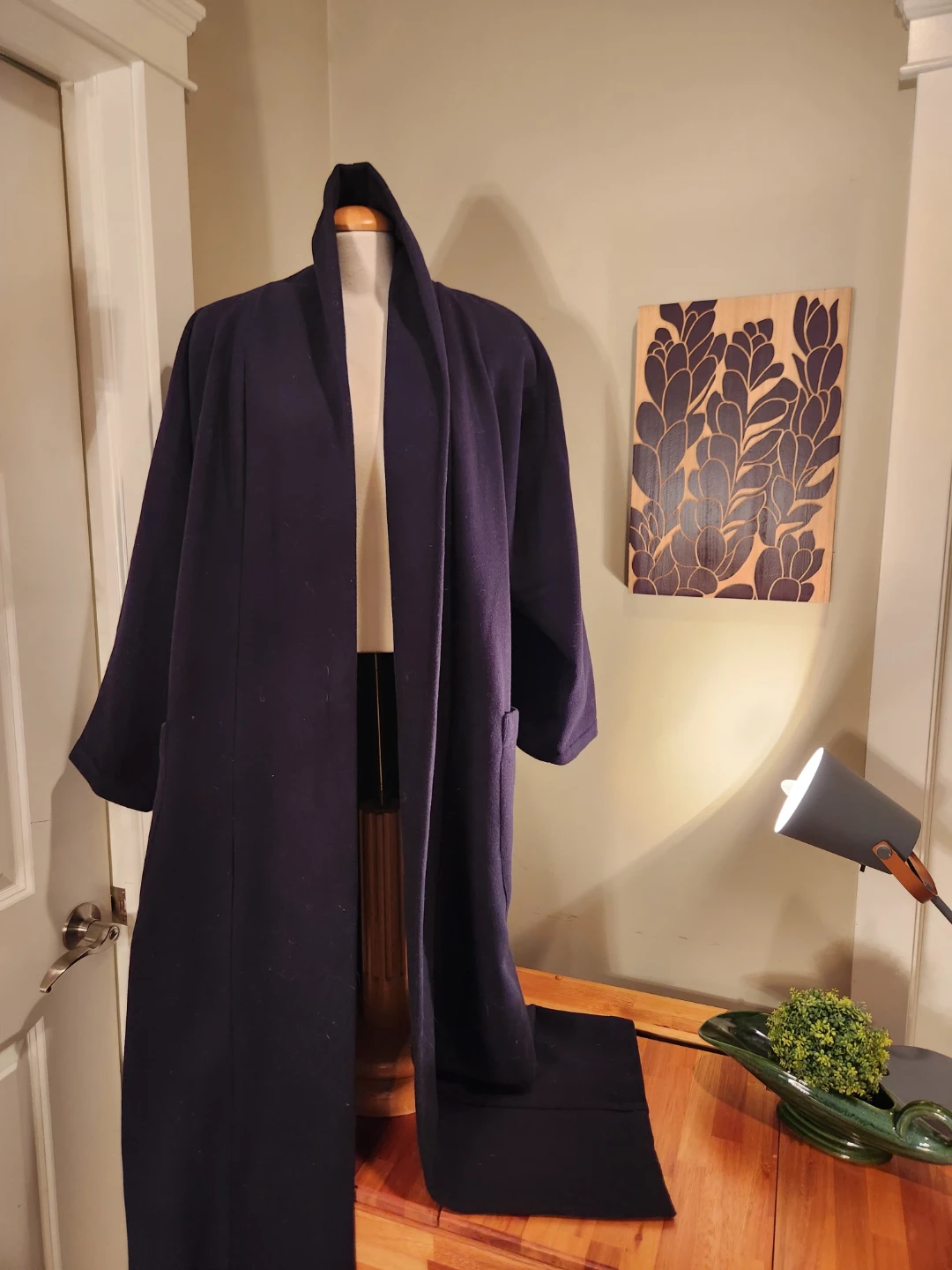 Selling a stylish kimono-style coat from My Style M! It's a beautiful midnight blue and in NEW condition. Can be worn with a belt, but didn't come with one. ORDERED this beuty ONLINE and couldn't return, its gorgeous. But too long for this gal. Im 5,5. Size Xtra large. This statement piece kimono style Perfect for adding a touch of elegance to any outfit
