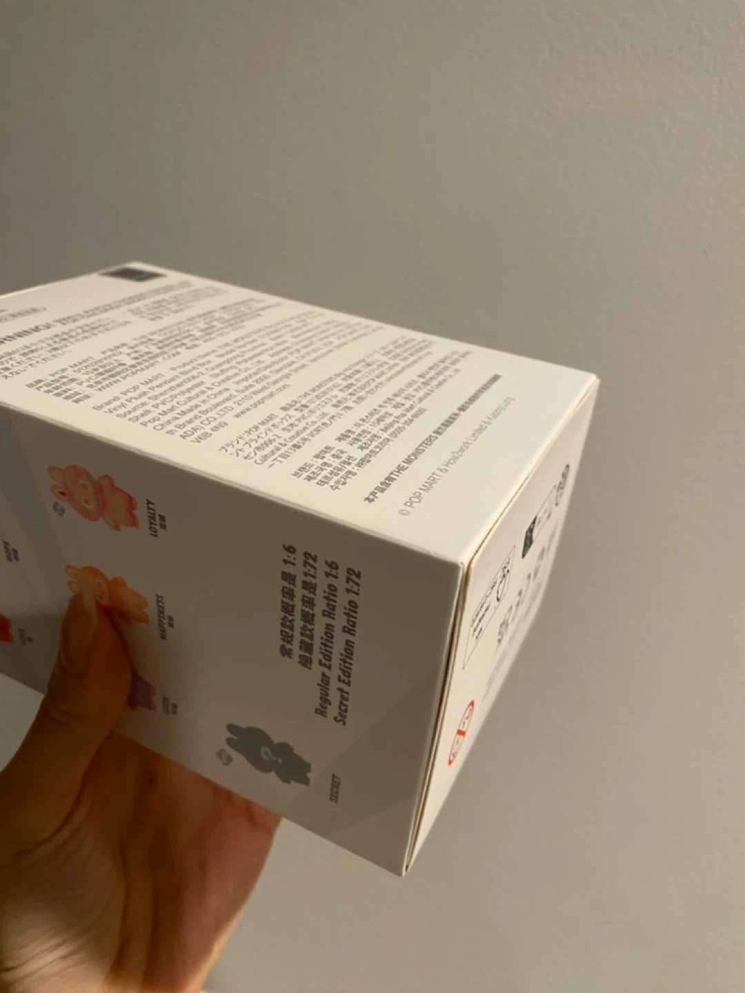 Blind box opened from the bottom to check card (happiness) - and then resealed. Very unnoticeable. Can still open from the top as if new. Selling lower price. Authentic from Popmart.