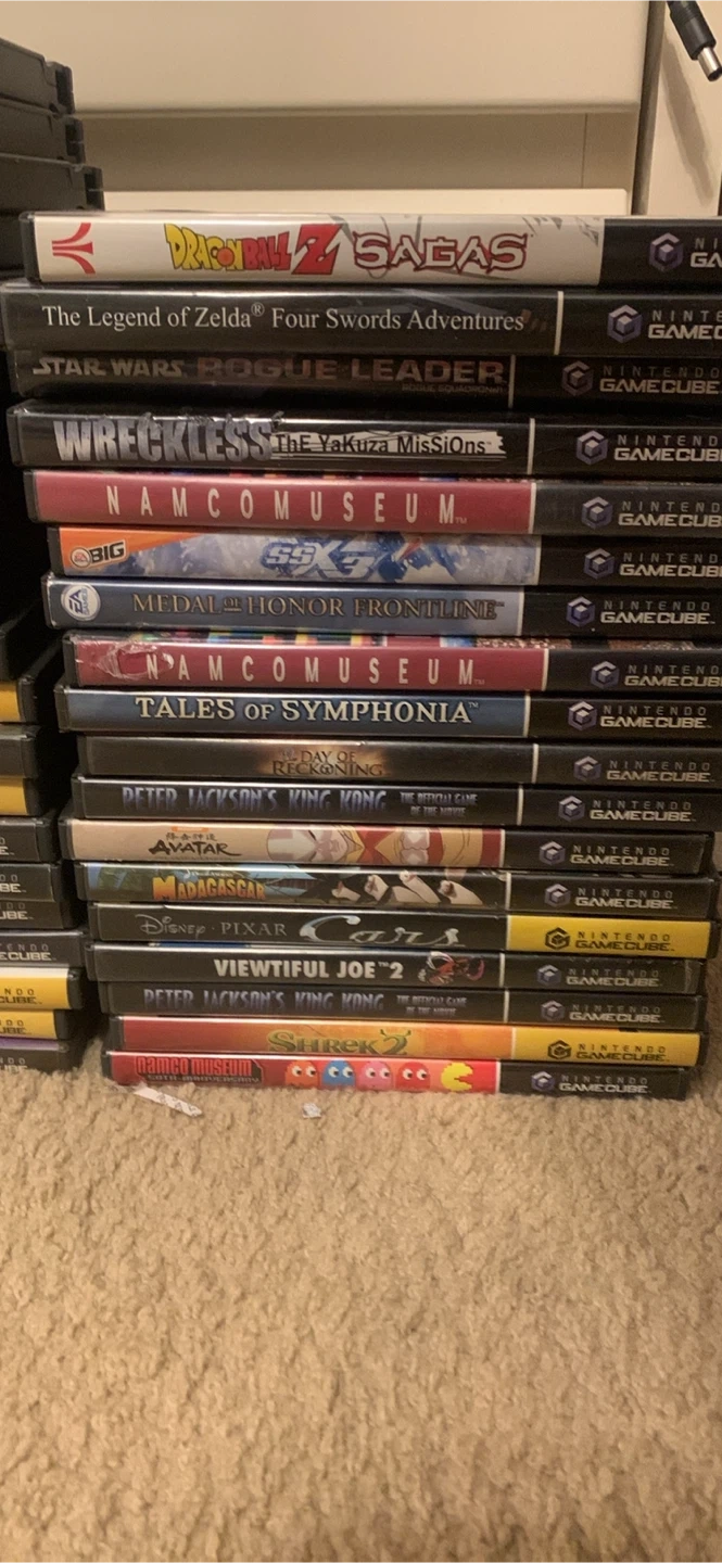 Selling a collection of Nintendo GameCube games! Titles include Dragon Ball Z Sagas, The Legend of Zelda Four Swords Adventures, Star Wars Rogue Leader, Wreckless the Yakuza Missions, Namco Museum, Medal of Honor Frontline, Tales of Symphonia, Peter Jackson's King Kong, Avatar, Madagascar, Disney Pixar Cars, Viewtiful Joe 2, and Shrek 2