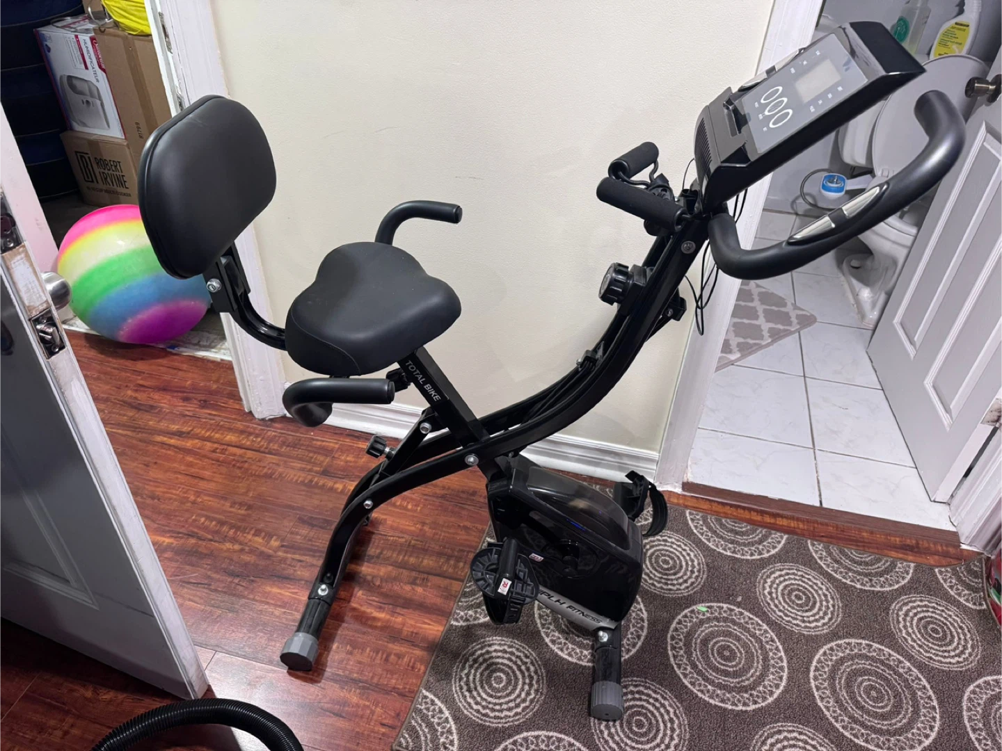 Selling a Total Bike recumbent exercise bike in good condition! It's perfect for getting a workout in at home. The bike features a comfortable seat and adjustable resistance, making it suitable for all fitness levels. It also has a built-in display to track your time, speed, and calories burned. It's been gently used and is ready for a new owner