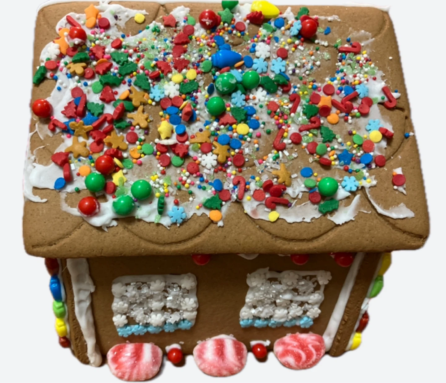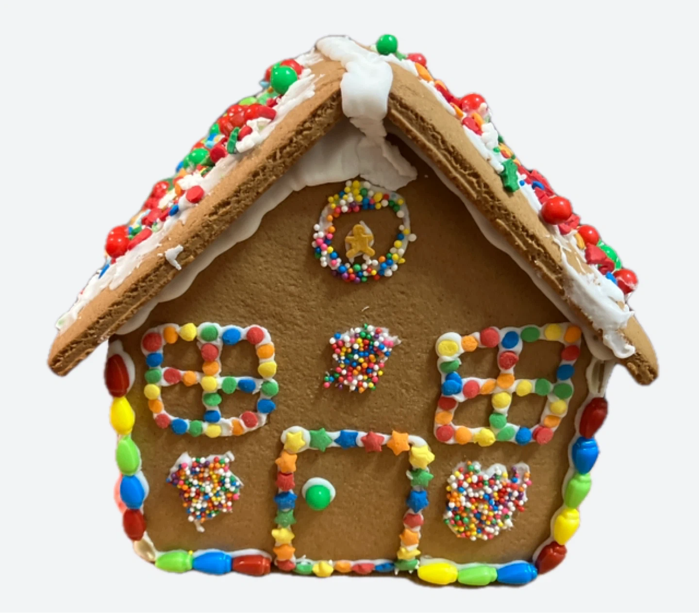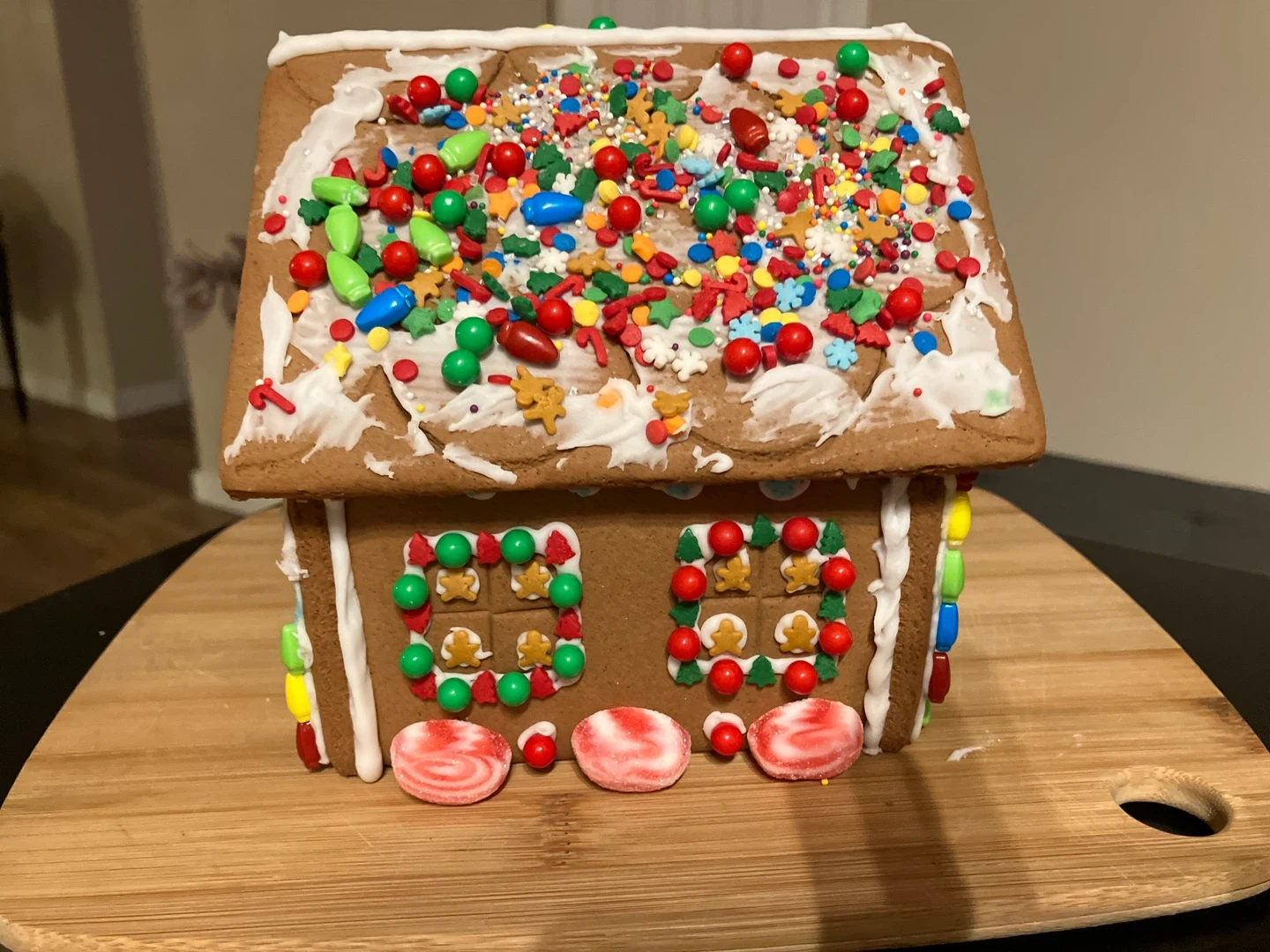 Selling a cute gingerbread house, perfect for the holidays! It's decorated with colourful candies and icing. It's a fun and festive decoration!