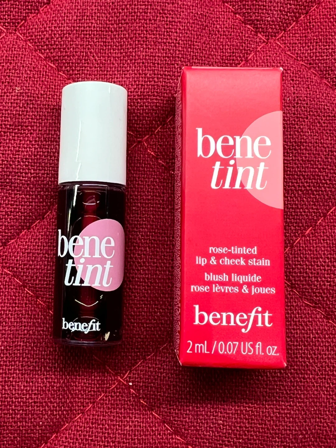 Selling a Mini Benefit Benetint rose-tinted lip and cheek stain in the original box! It's a blush liquide that's perfect for adding a natural flush of colour to your lips and cheeks. The size is 2 mL / 0.07 US fl oz.