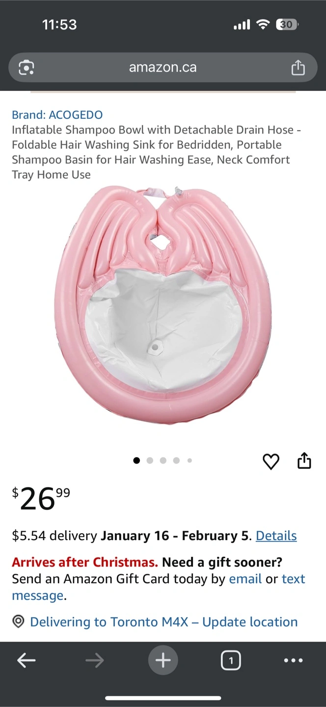 Selling an ACOGEDO inflatable hair washing bowl. It comes with a detachable drain hose and is foldable, making it portable and easy to store. Includes the pump and hose shown in the pictures. Originally bought for $26.99