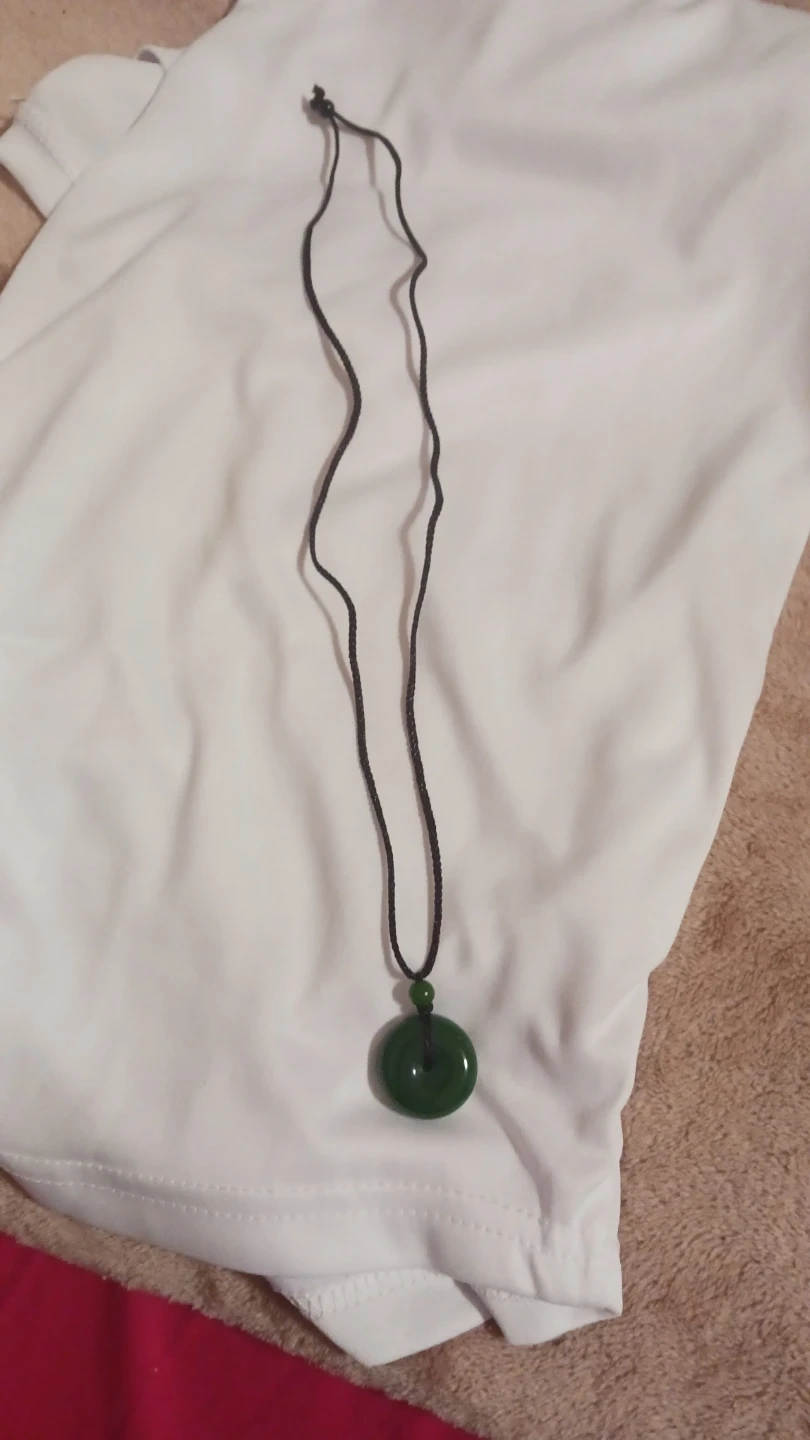 Here's a lovely green jade Pi disc pendant necklace! It's in perfct condition and ready to wear. The pendant is a classic design and would look great with any outfit.