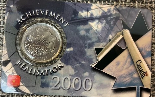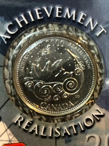 Sealed Artist Tribute Collection. 2000 Millennium Quarter Series March- Achievement Celebrate Canada's turn of the century spirit with the 2000 Achievement Collectible Commemorative Quarter. Struck in nickel and boasting an uncirculated finish, this 25-cent piece is a pristine tribute to the new millennium, showcasing a unique design that captures the essence of Canadian pride.