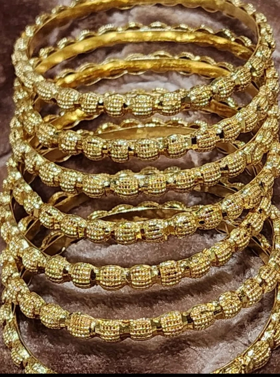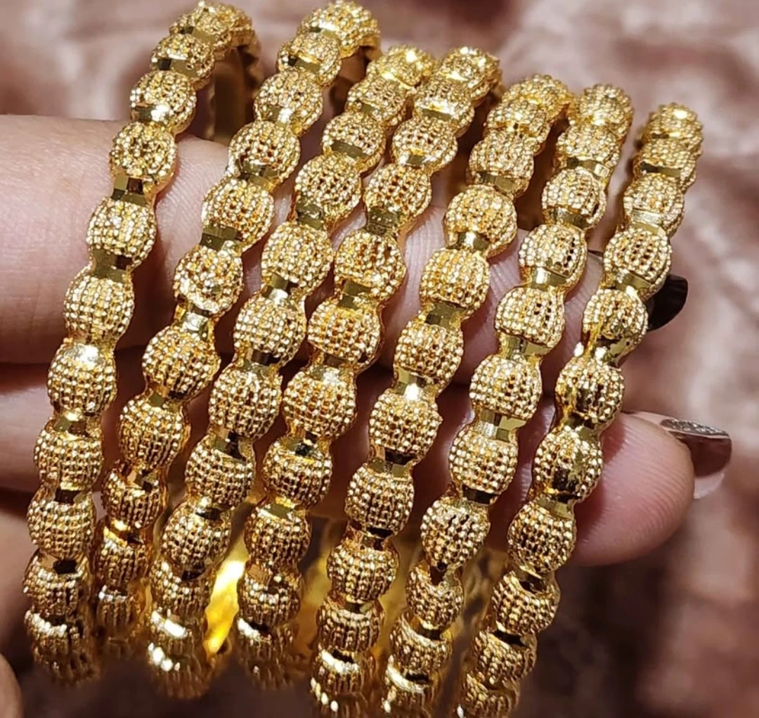 Selling a set of gold-plated bangles. They would be a lovely addition to any jewelry collection, party wear.