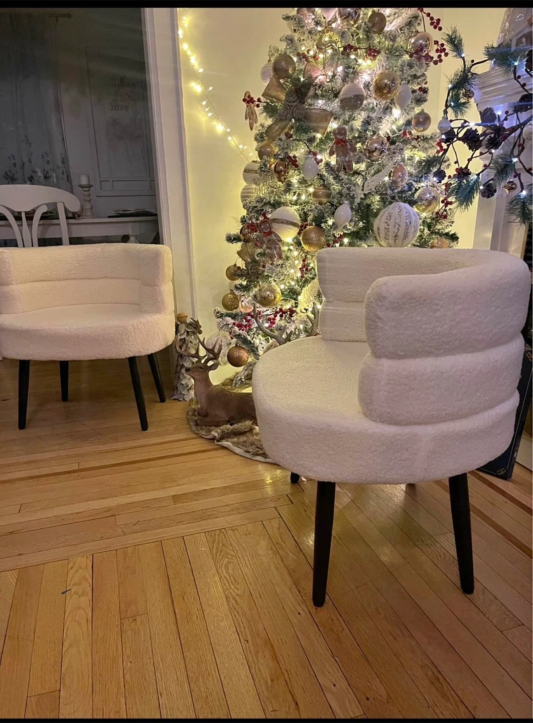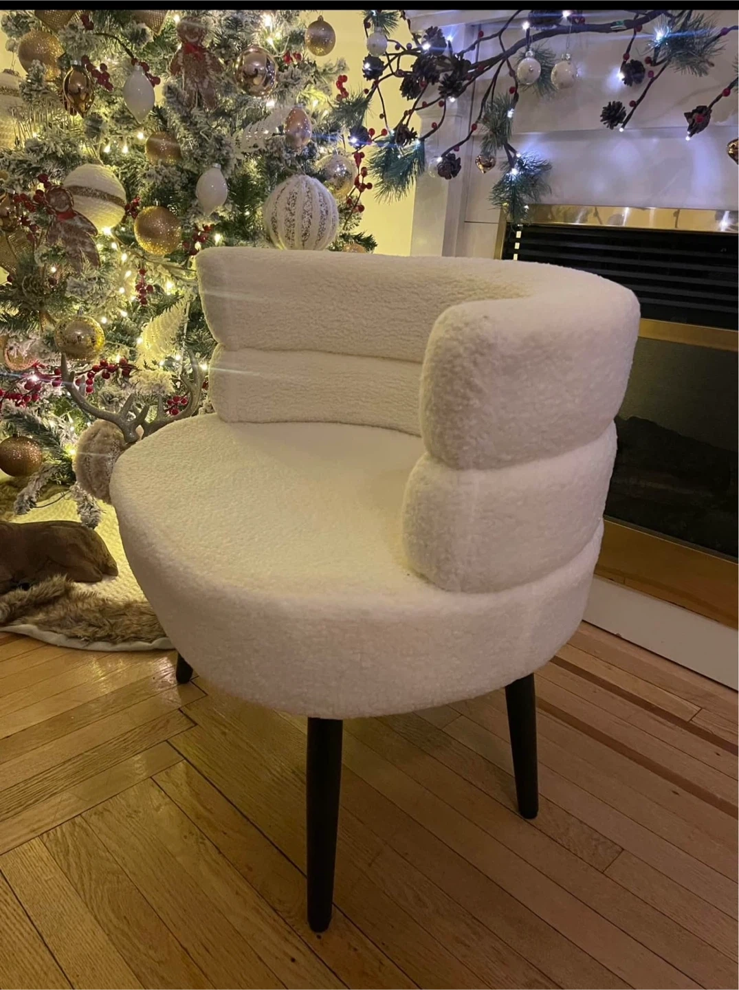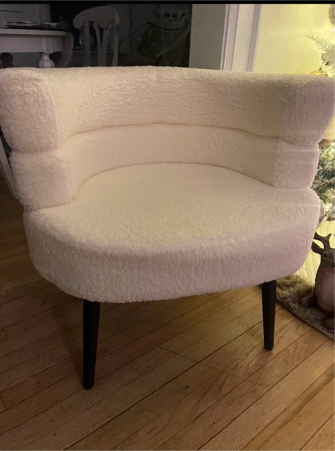 Selling a super cute cream boucle accent chair! It's in mint condition, never used and only set up for this sale and would look lovely in any room. The soft boucle material is so comfy, and the chair is surprisingly sturdy. It's a great size for a small space too!