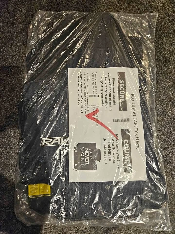 Selling a brand-new set of genuine Toyota RAV4 carpet floor mats, still sealed in the original factory packaging. Originally from a 2023 RAV4 Hybrid XLE.