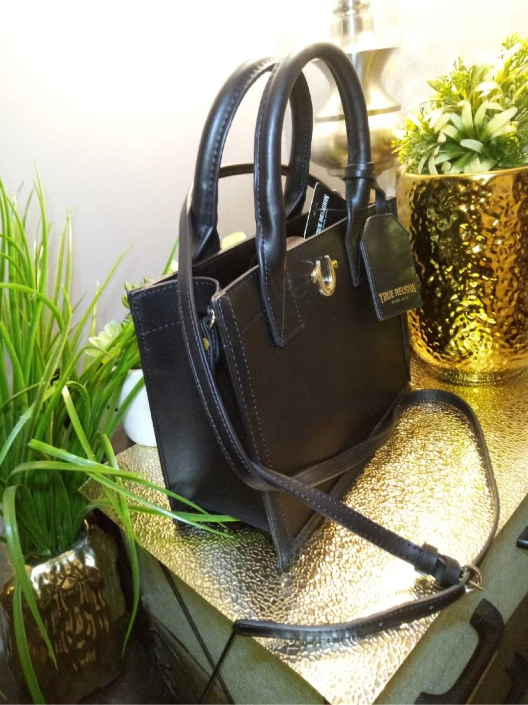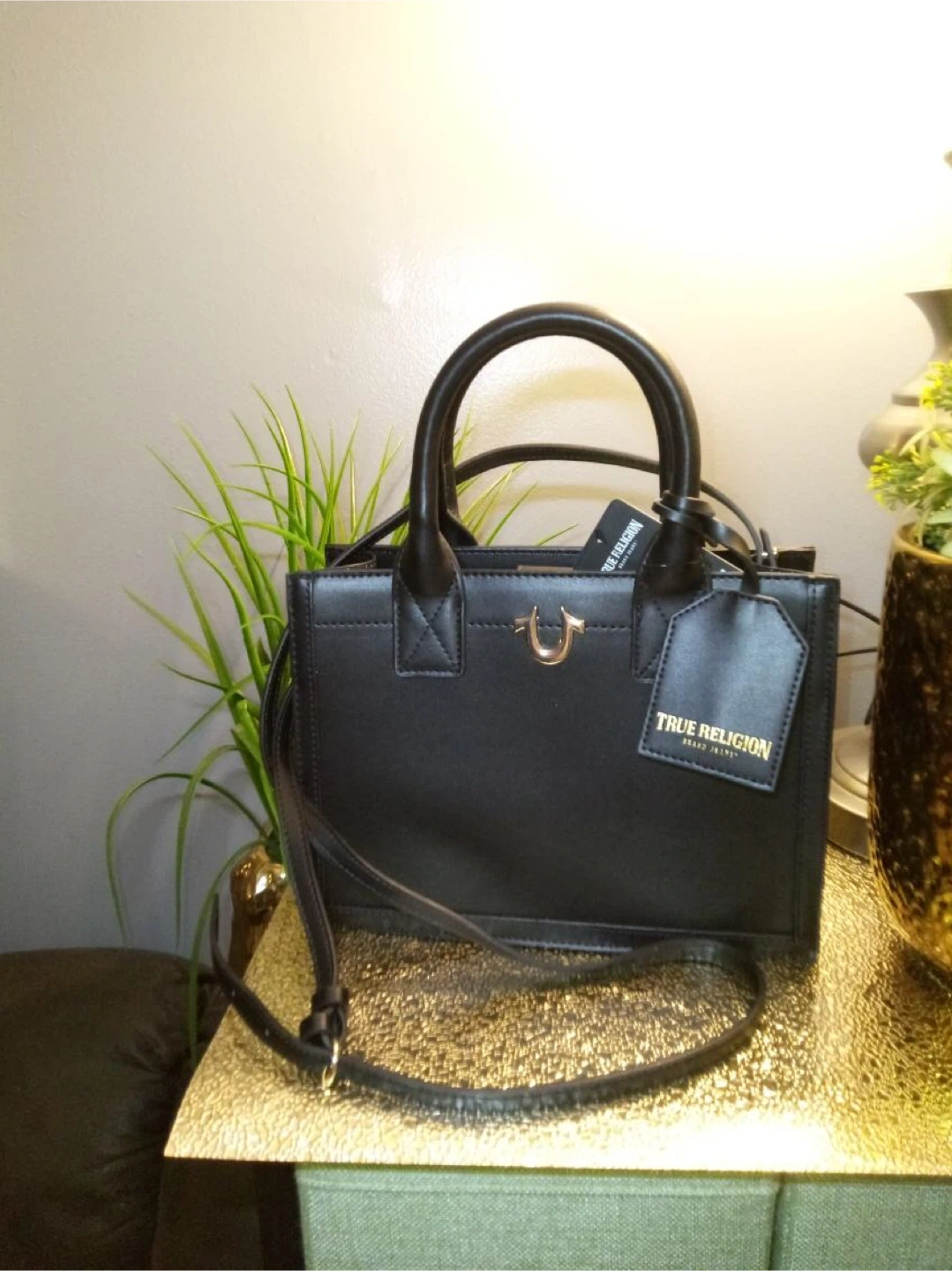 Selling a stylish black tote bag from True Religion! It features a sleek design with the iconic True Religion logo. Perfect for carrying your essentials in style!