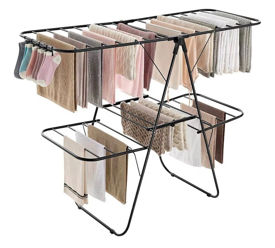 This premium SONGMICS 2-level drying rack offers 33 drying rails, sock clips, and height-adjustable wings — giving you tons of drying space without taking up your floor.