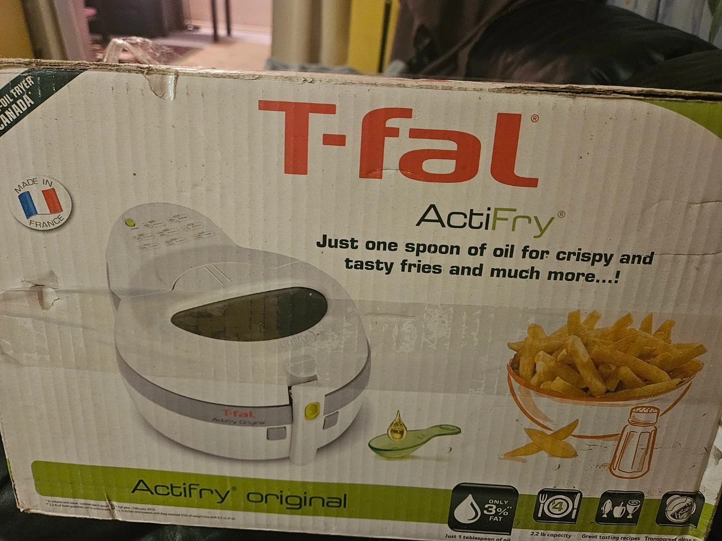 Selling a T-fal ActiFry Original. It's in great condition and comes with the box! The ActiFry does not need oil, but for some recepie some people can use just one spoon of oil for crispy and tasty fries and much more. Great for healthy cooking!
