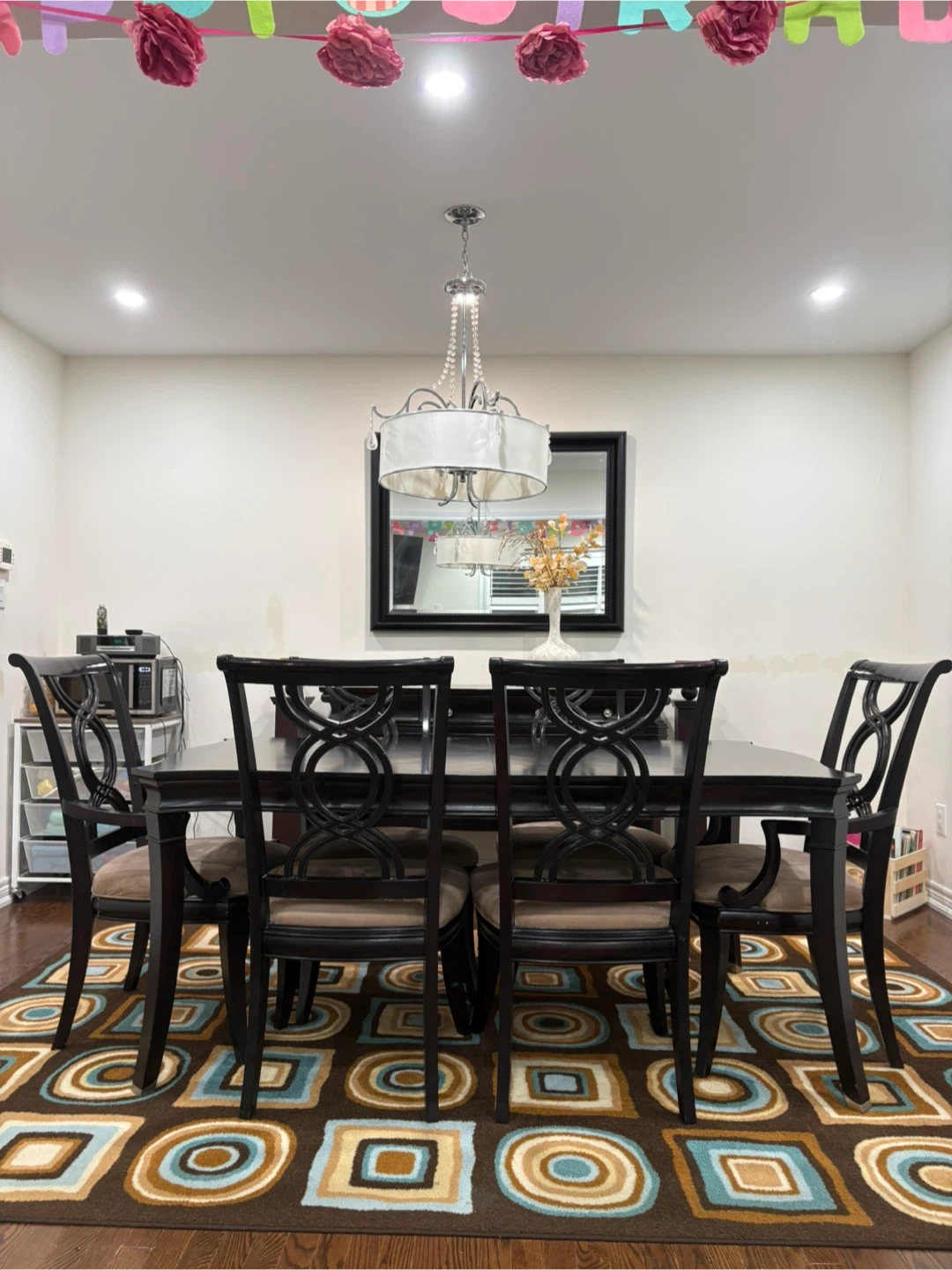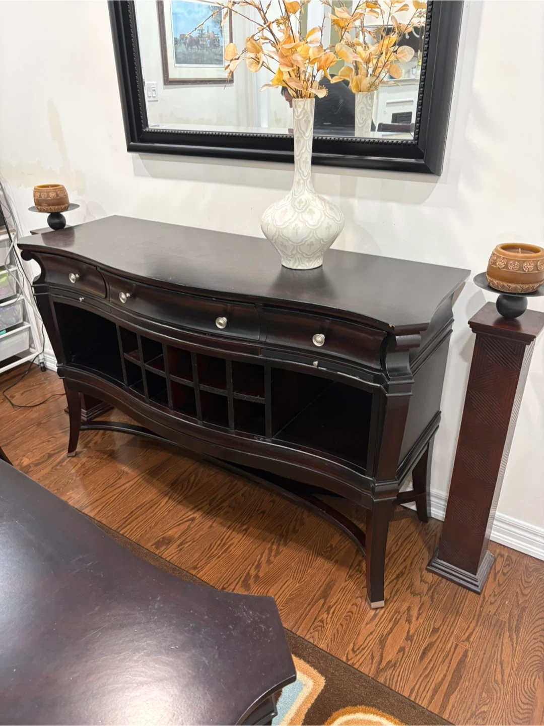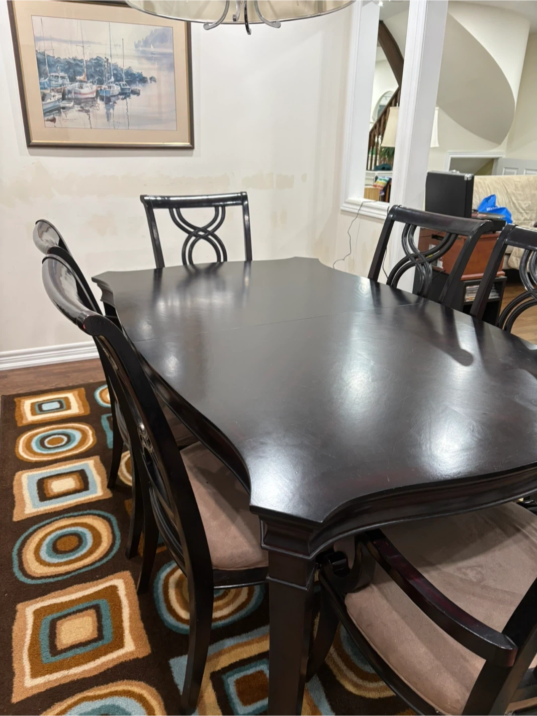 Selling a beautiful dining room set that includes a table, six chairs, hutch, mirror, carpet and candle pedestal. If ad is up it’s available. Has a leaf to expand as well. Pick up Brampton