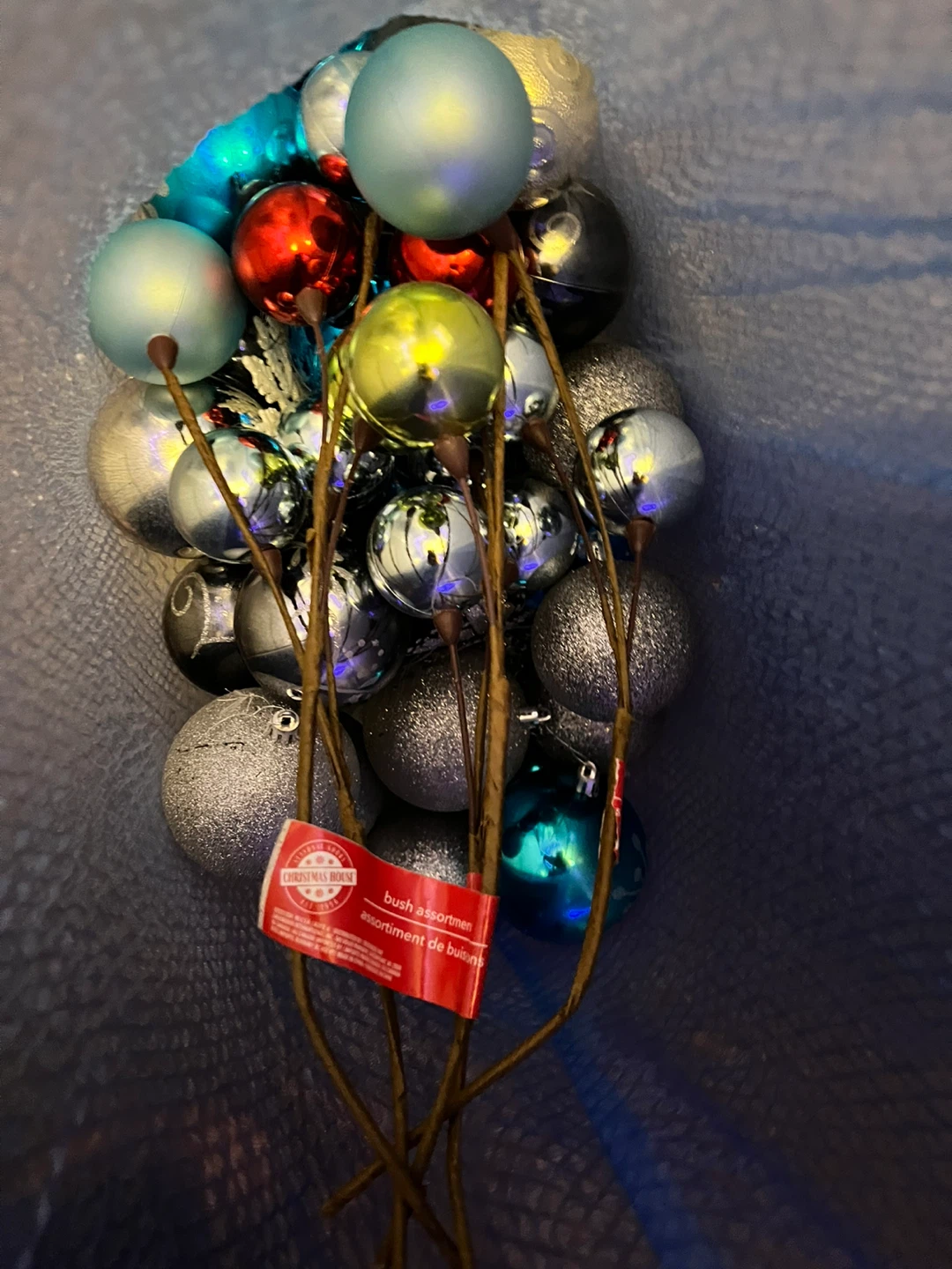 Giving away a Christmas House assortment of Christmas ornaments. The ornaments are various colours, including silver, blue, red, and gold. They are in great condition and ready to decorate your home for the holidays!