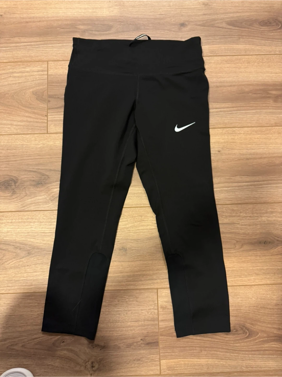 These Nike running capris are in great condition and ready for your next run! They're a sleek black colour and feature the iconic Nike swoosh. Worn only once.