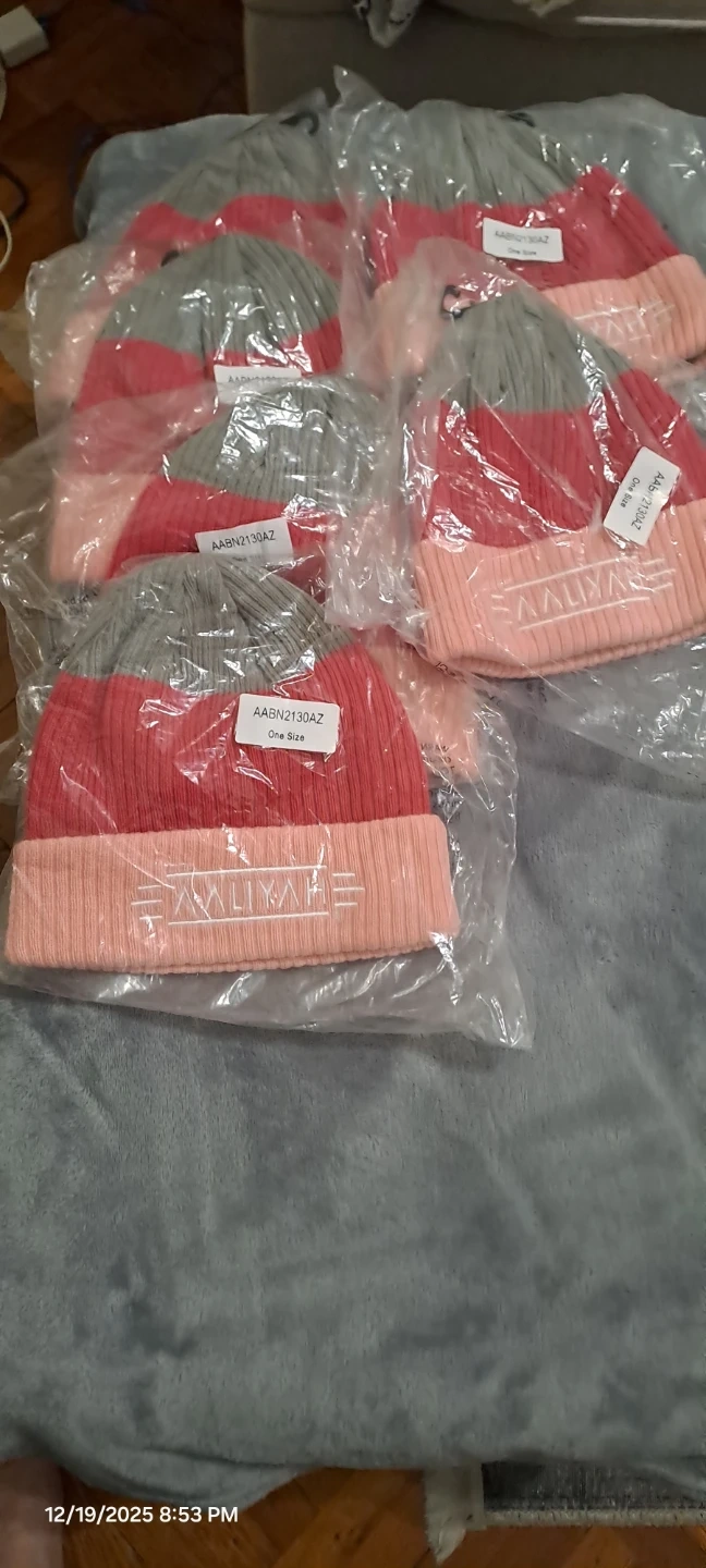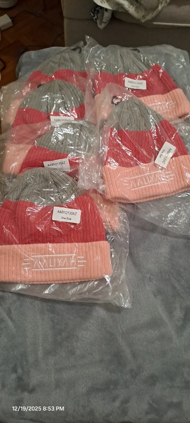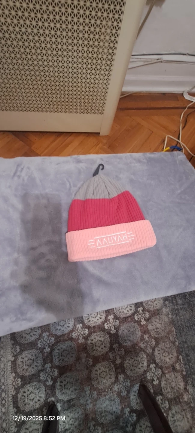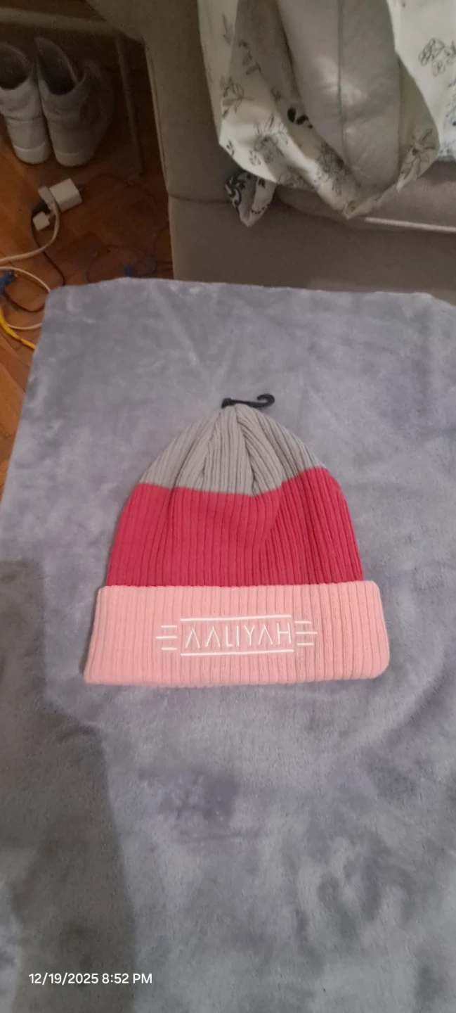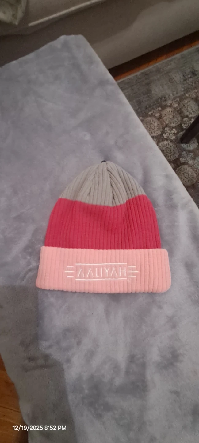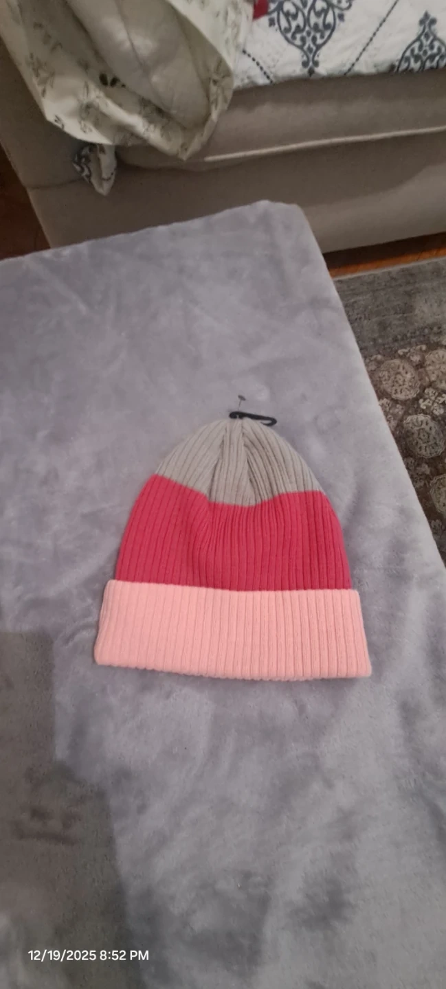 Aaliyah beanie, brand new in original packaging! It's a one-size-fits-all and features a stylish color block design in gray, red, and pink.