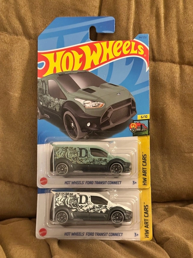 I'm selling a pair of new Hot Wheels Ford Transit Connect toy cars. These die-cast models feature unique designs and are perfect for collectors or kids. Grab them while you can! If the ad is up, the item is available!