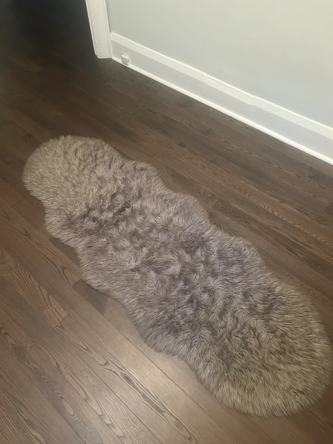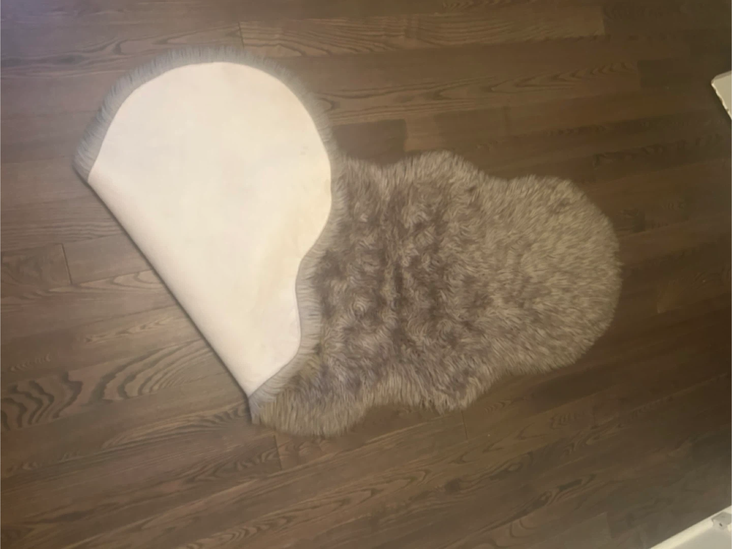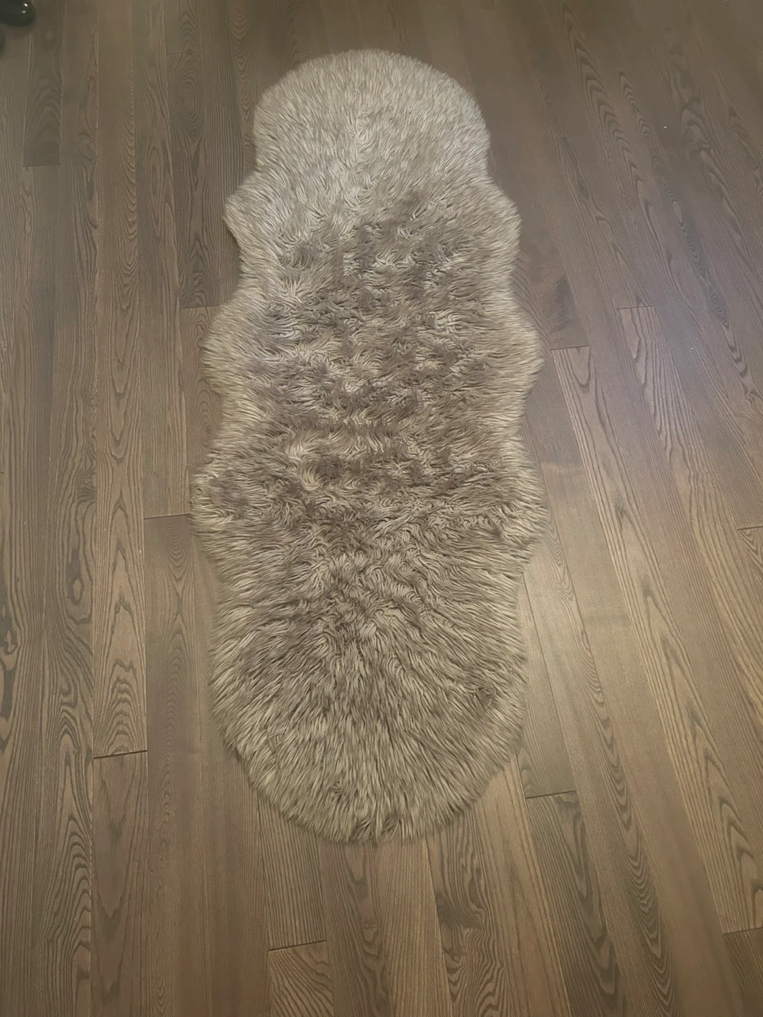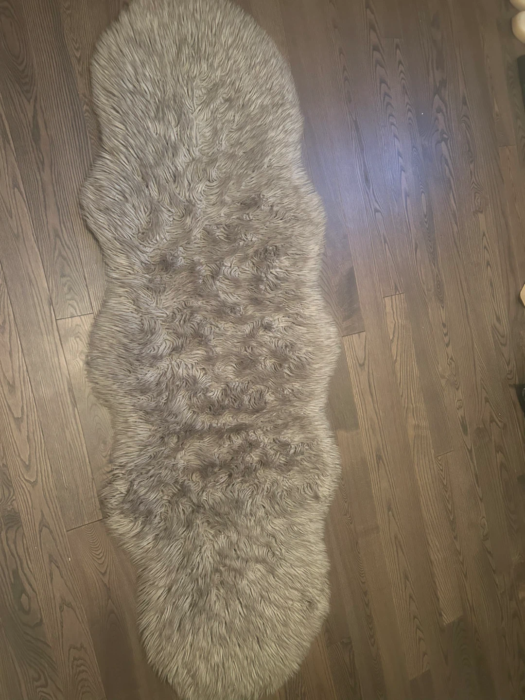 Selling a faux sheepskin area rug in a lovely grey colour. It's in great condition and would add a cozy touch to any room! 1.80 meters in length and 64cm wide
