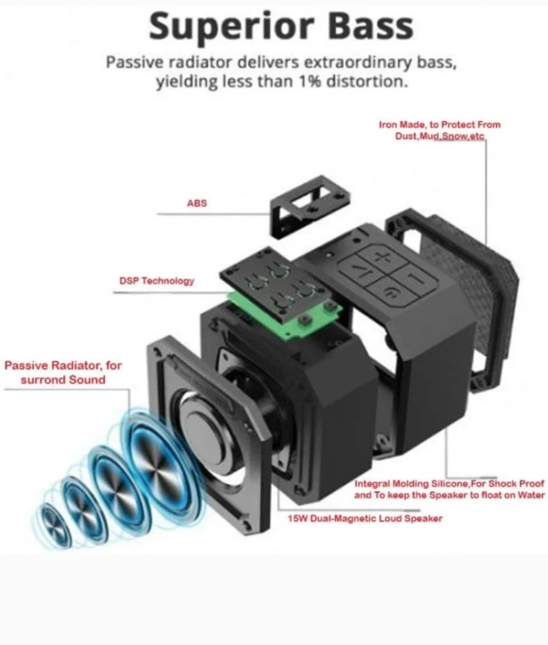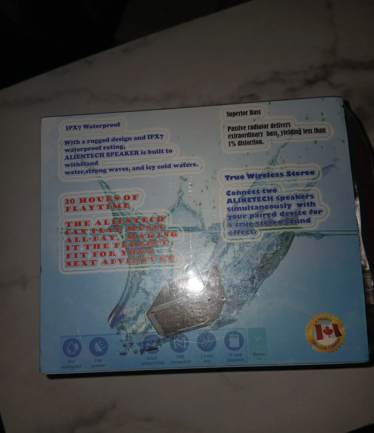 This speaker is built to withstand water, strong waves, and icy cold waters. It can play music all day, making it the perfect fit for your next adventures. It also has a passive radiator that delivers extraordinary bass, yielding less than 1% distortion. Comes with the original box!