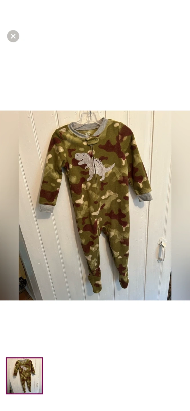 Carter's 2T Camo Dinosaur Fleece Footed Pajamas