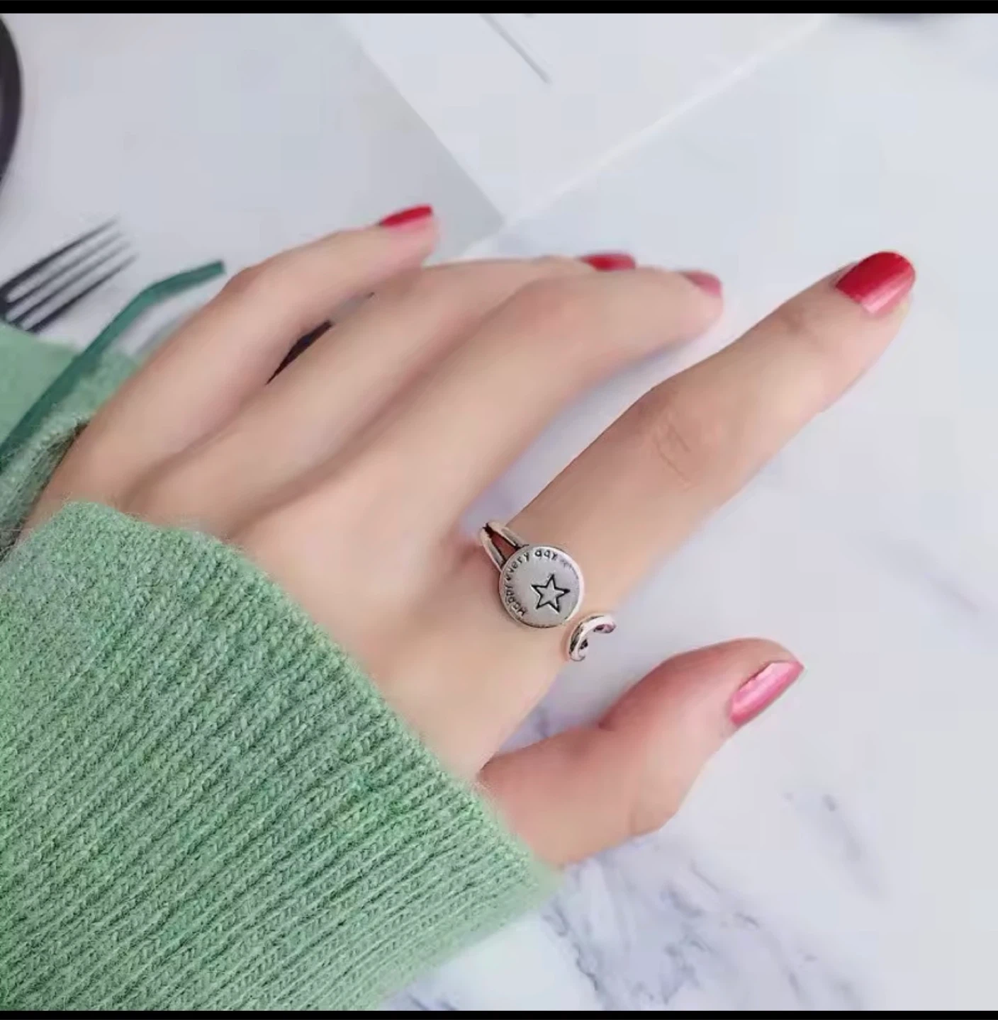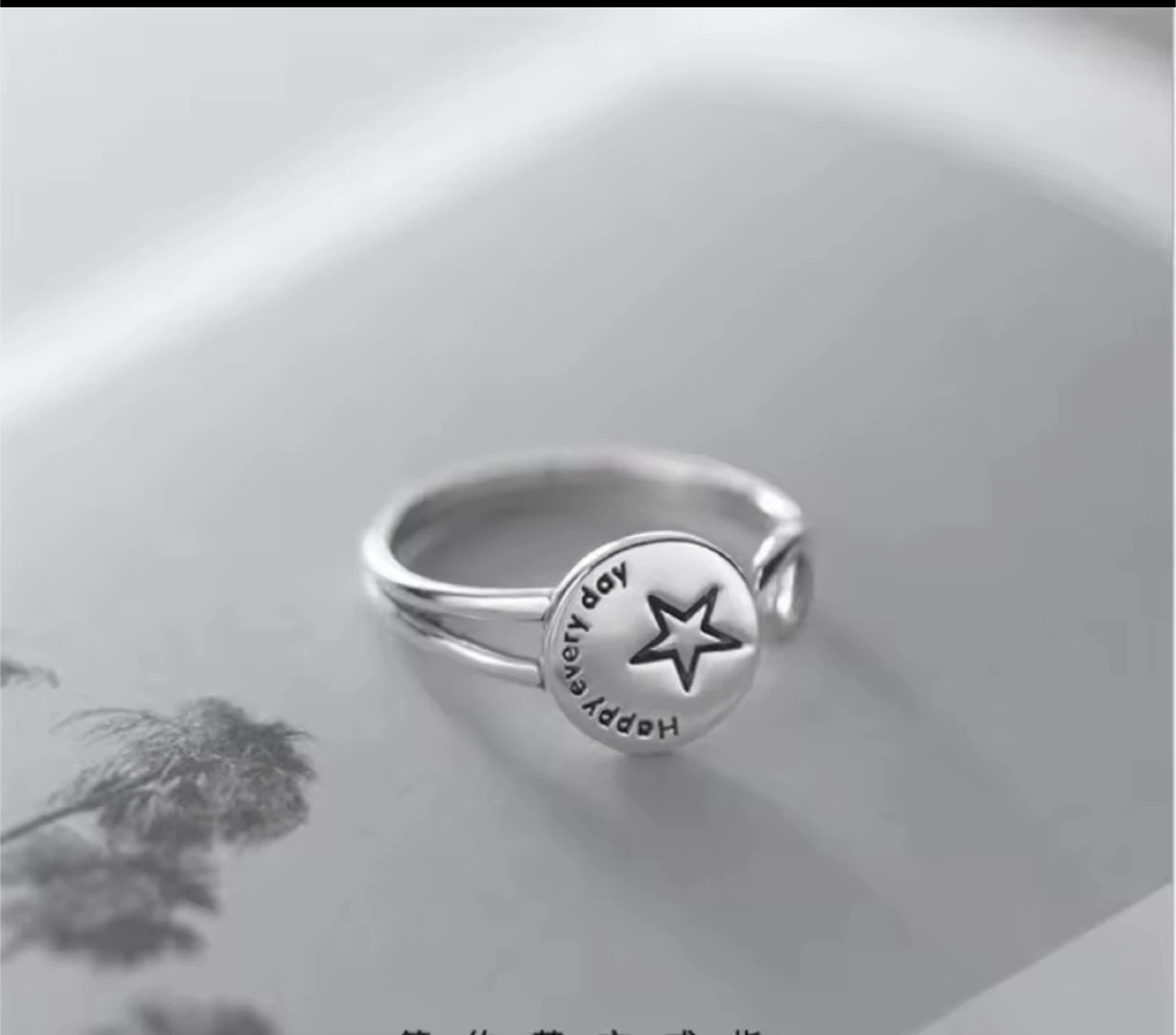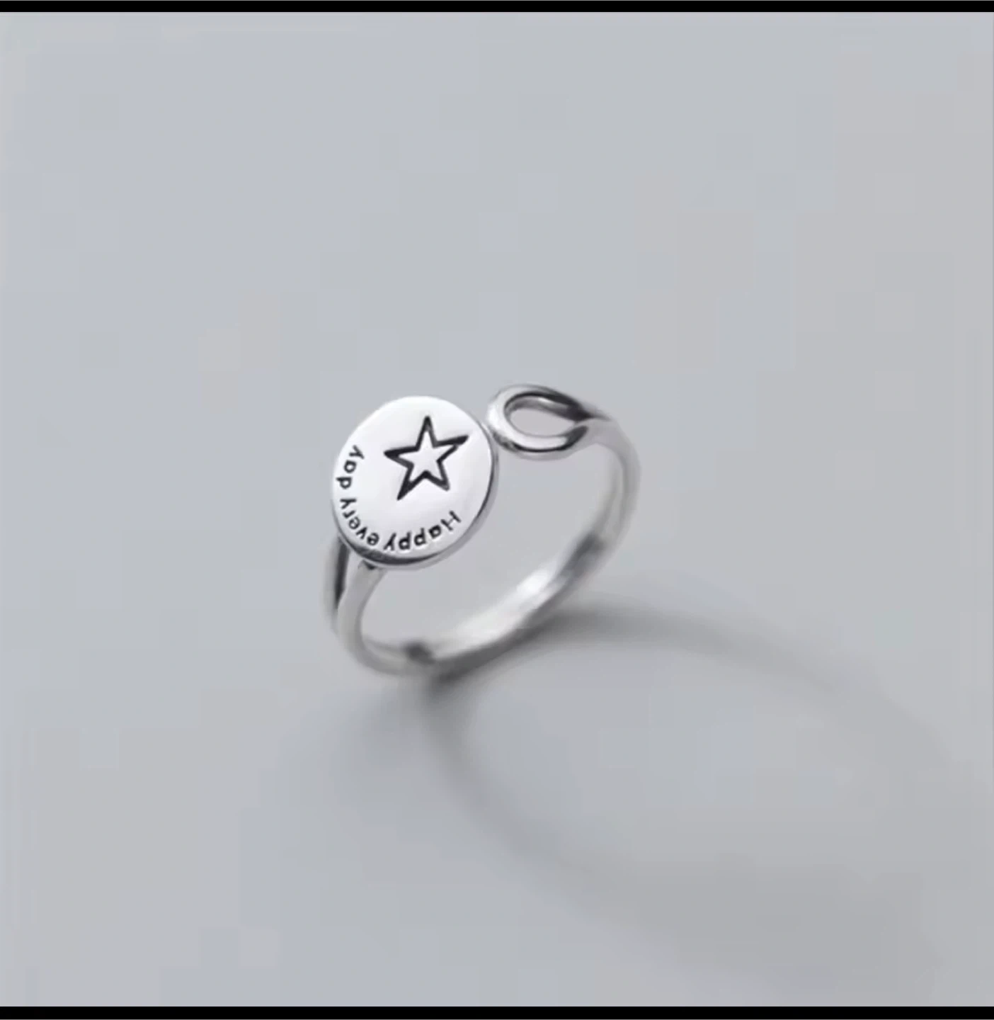 A cute S925 silver ring with a star design and the words 'Happy every day'. It's in great condition and ready to wear!