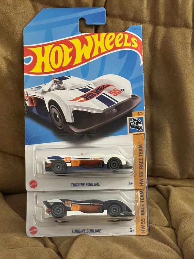 Hot Wheels Turbine Sublime die-cast car, a must-have for collectors and racing enthusiasts alike. This model is brand new, still sealed in its original packaging, ensuring it's in mint condition. Own a piece of miniature racing history. It's ready to rev up some fun, whether on display or racing down the track! If the listing is still up, yes, it's still available!