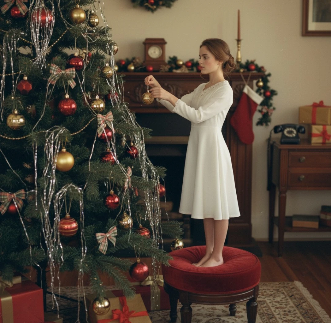 We create multiple holiday variations inspired by classic Christmas moments: soft light, cozy interiors, elegant details, and nostalgic warmth.