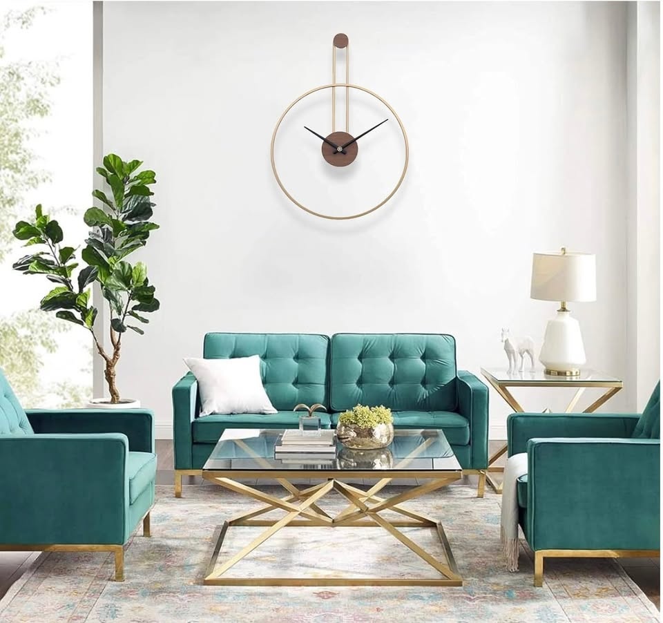 Gold Wall Clock with Wood Dial