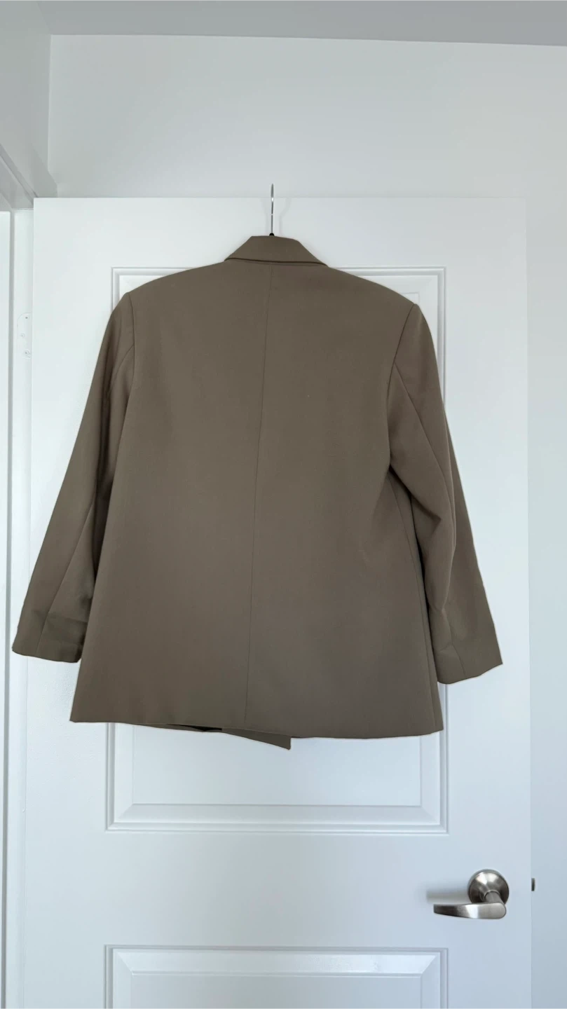 Selling a Zara oversized double-breasted jacket. It's a size M and in great condition! The colour is a lovely muted olive green. Perfect for layering or wearing on its own