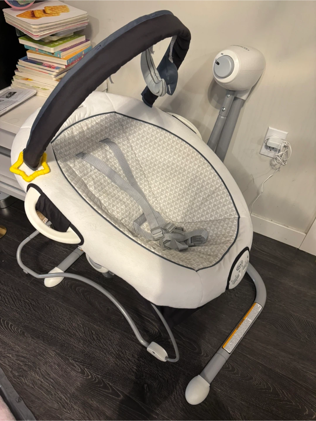 I'm selling a Graco Soothe 'n Sway LX Swing with Portable Bouncer. The colour is Rainier. Originally bought for $219.95. It's in great condition and ready for a new family!