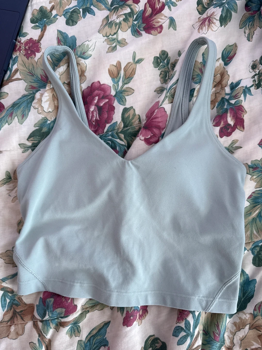 Here's a light blue Lululemon tank top! It's in great condition and ready for a new owner. Perfect for workouts or casual wear